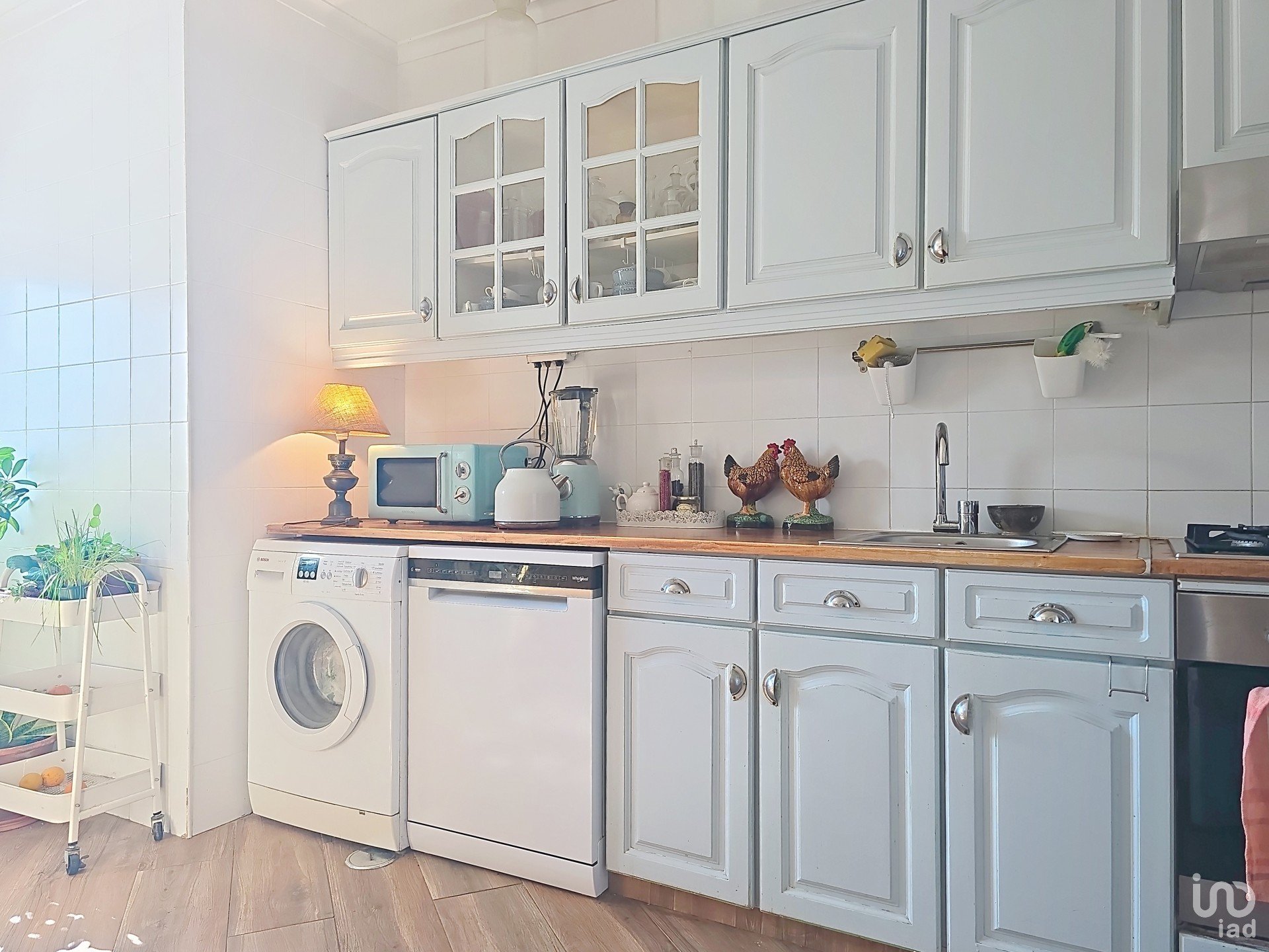 Fully equipped kitchen: oven, extractor, fridge, washing machine, and dishwasher