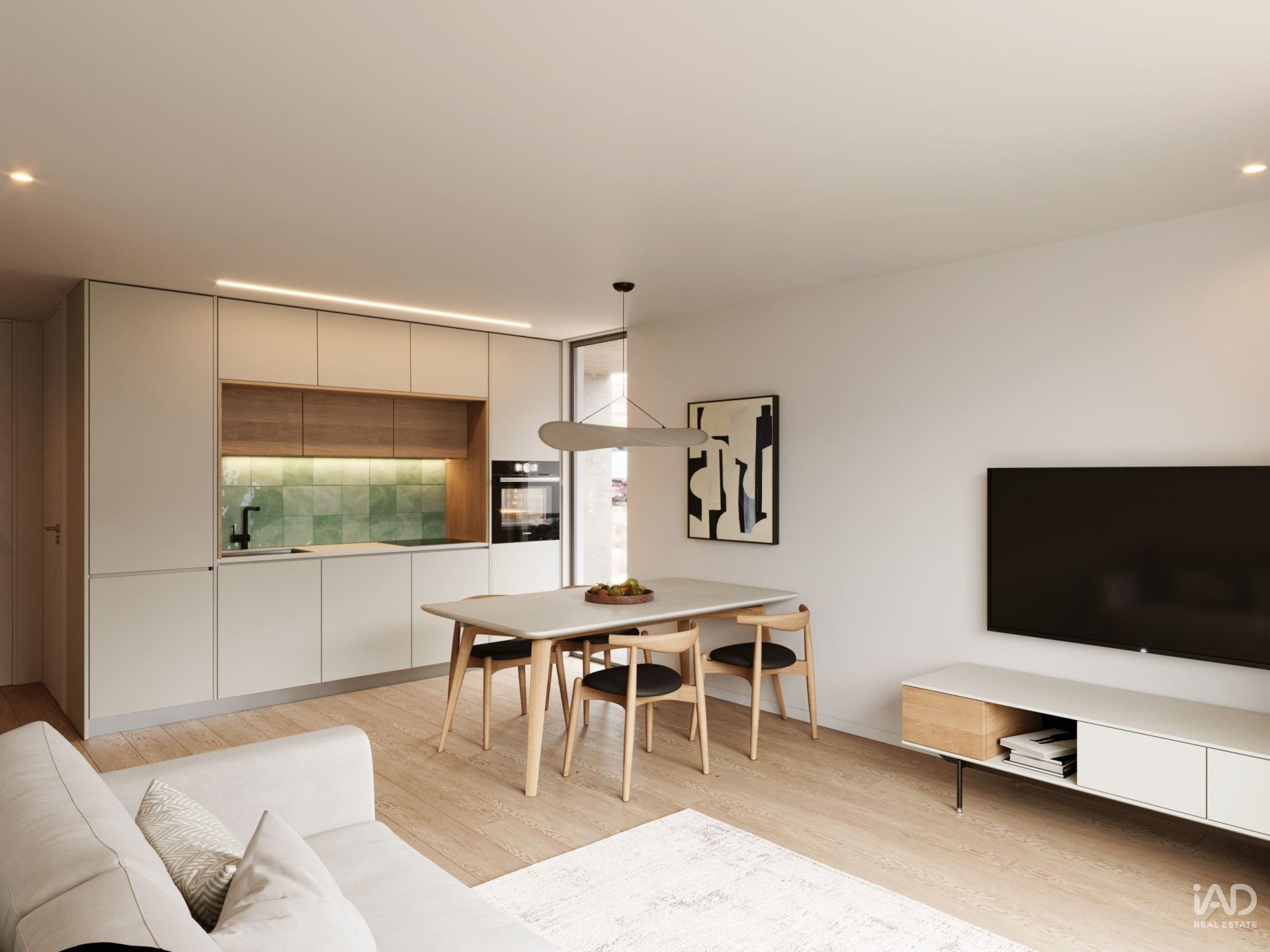 The fully equipped kitchen, featuring modern appliances, flows naturally into the spacious and versatile living room—perfect for entertaining or relaxing. The property also includes four parking spaces, offering maximum convenience, safety, and functionality.