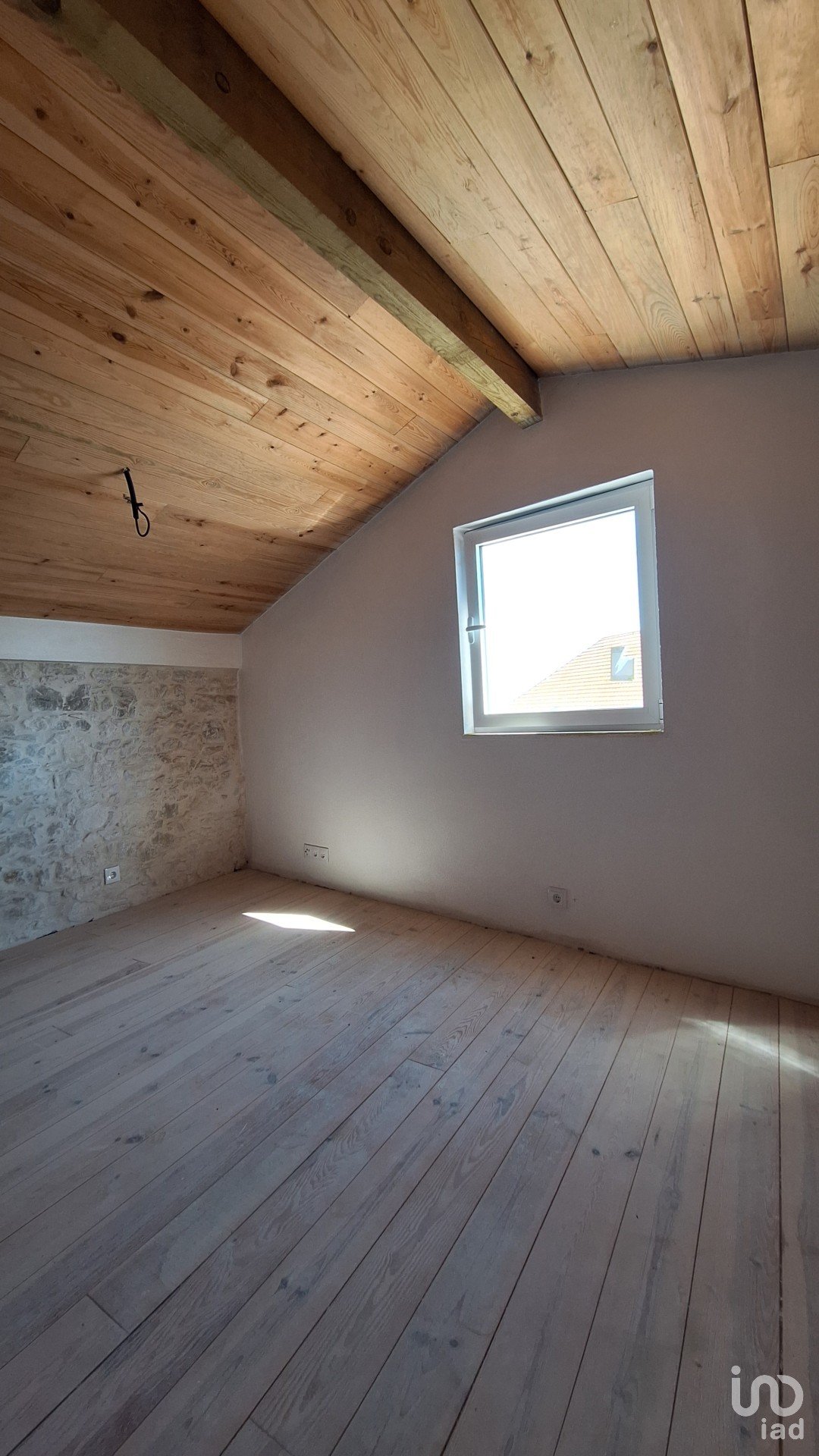 On the ground floor, the open-plan living area integrates the kitchen and living room, complemented by a guest bathroom. High-quality materials such as wood, iron, and stone slabs in the entrance lend refinement and authenticity to the property.