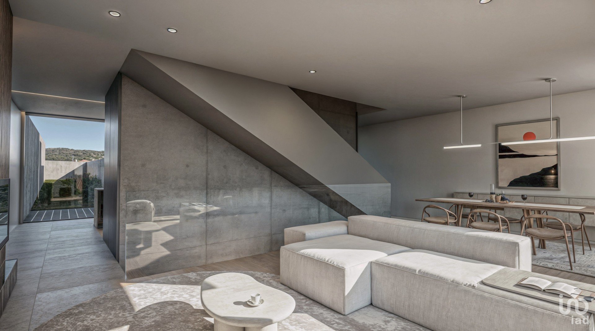 🔹 Ground floor: modern, fully-equipped kitchen with central island, open to a large dining room and living room, creating a sophisticated and warm atmosphere. Guest WC with washbasin.