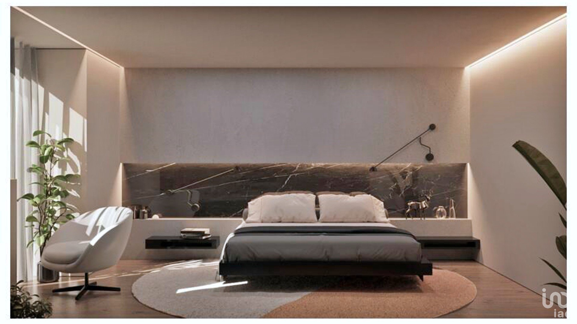 - Tetos falsos com iluminação LED, incluindo luz indireta na sala e nos quartos