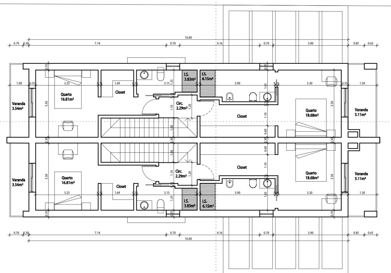 On the first floor, there are 2 suites measuring 16.81m2 and 18.68m2 with dressing room and bathroom, both with a balcony.