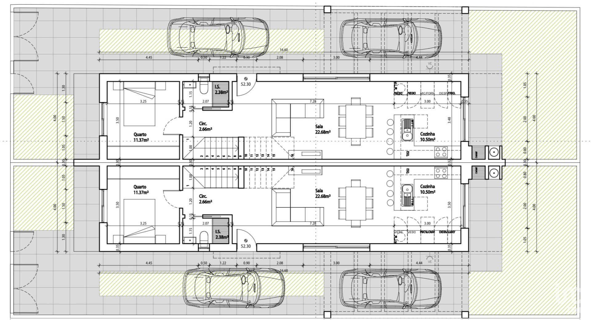 Fantastic semi-detached house distributed harmoniously and with good use of space. The social area consists of an entrance hall, a bedroom of 11.37m2 and a living room of 22.68m2 with access to the kitchen (open space) of 10.50m2, providing connection to the garden which has a barbecue with dishwasher.