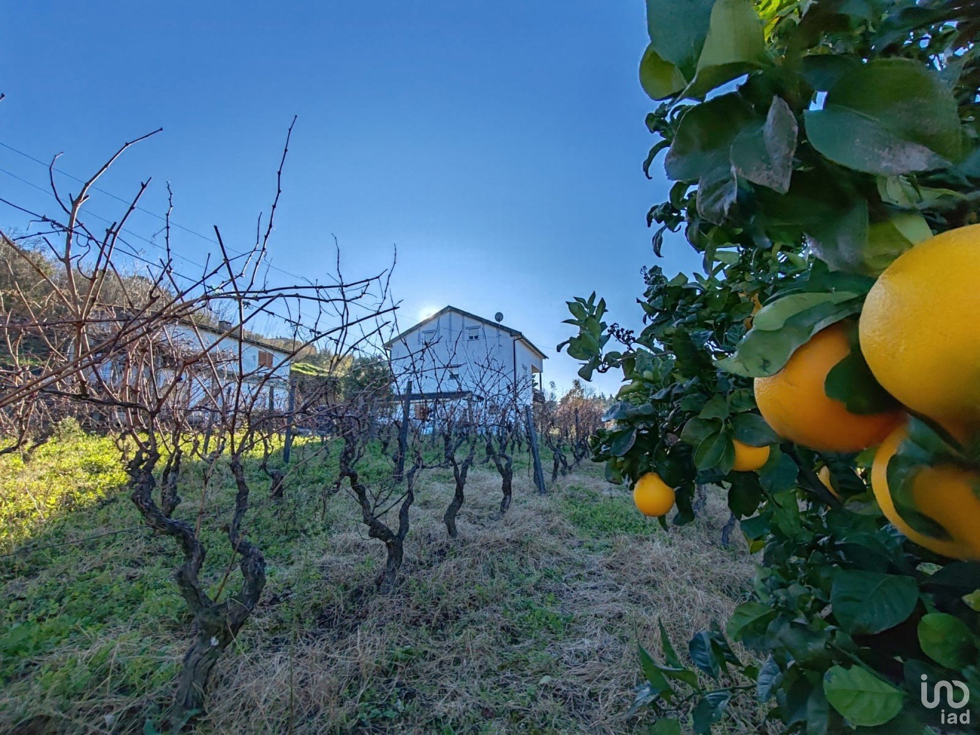 Surrounded by fertile land. Vineyard, great diversity of fruit trees and olive trees.