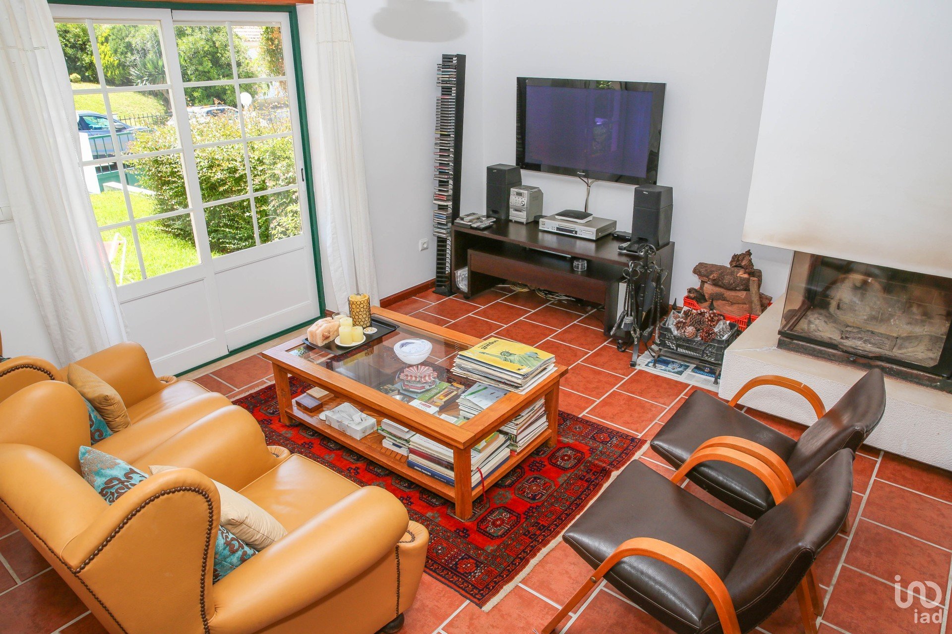 The living room has doors leading directly onto the grassy garden and floods the house with natural light, and for winter nights, the corner fireplace is absolutely perfect.
