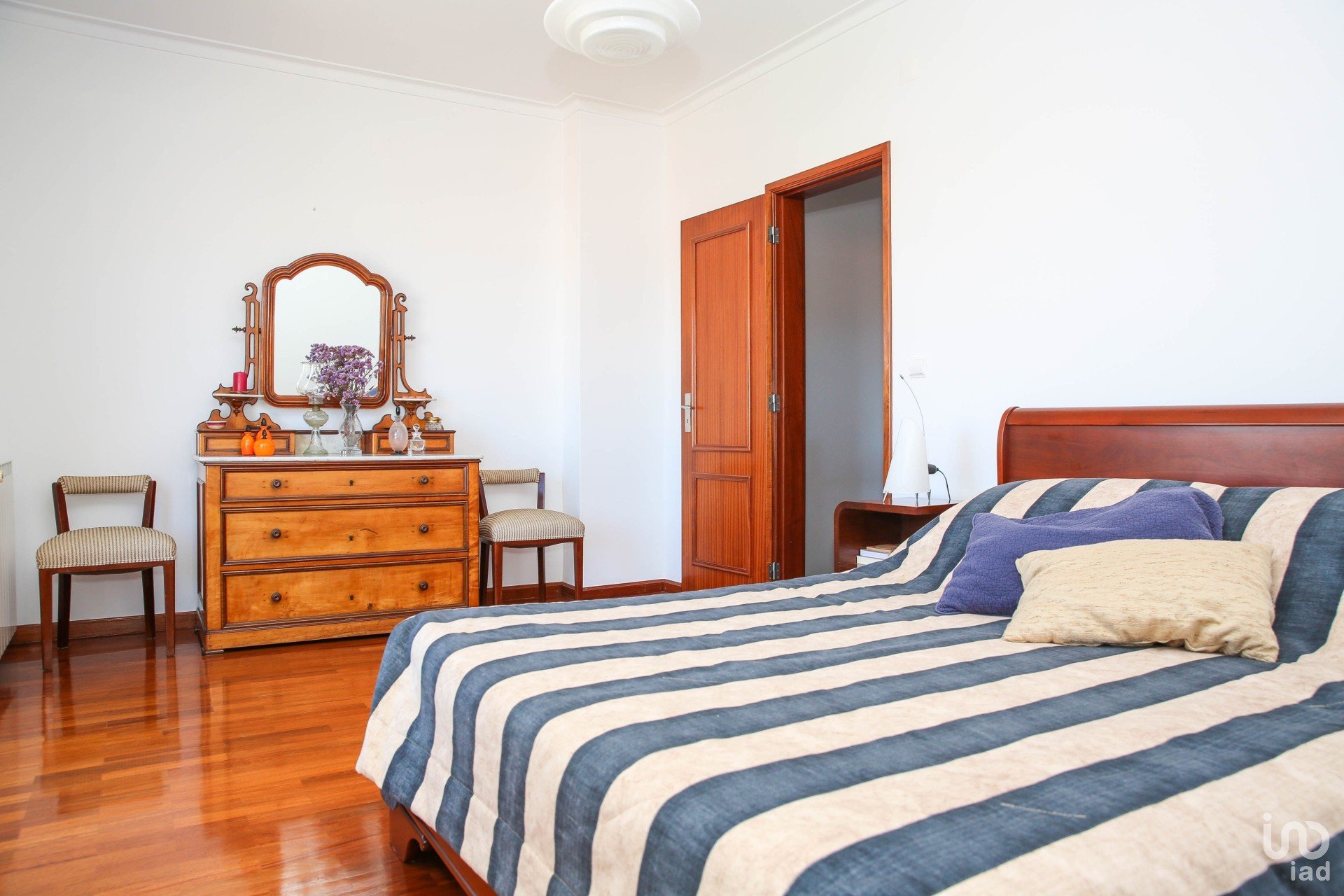 Master bedroom with walk-in closet and balcony.