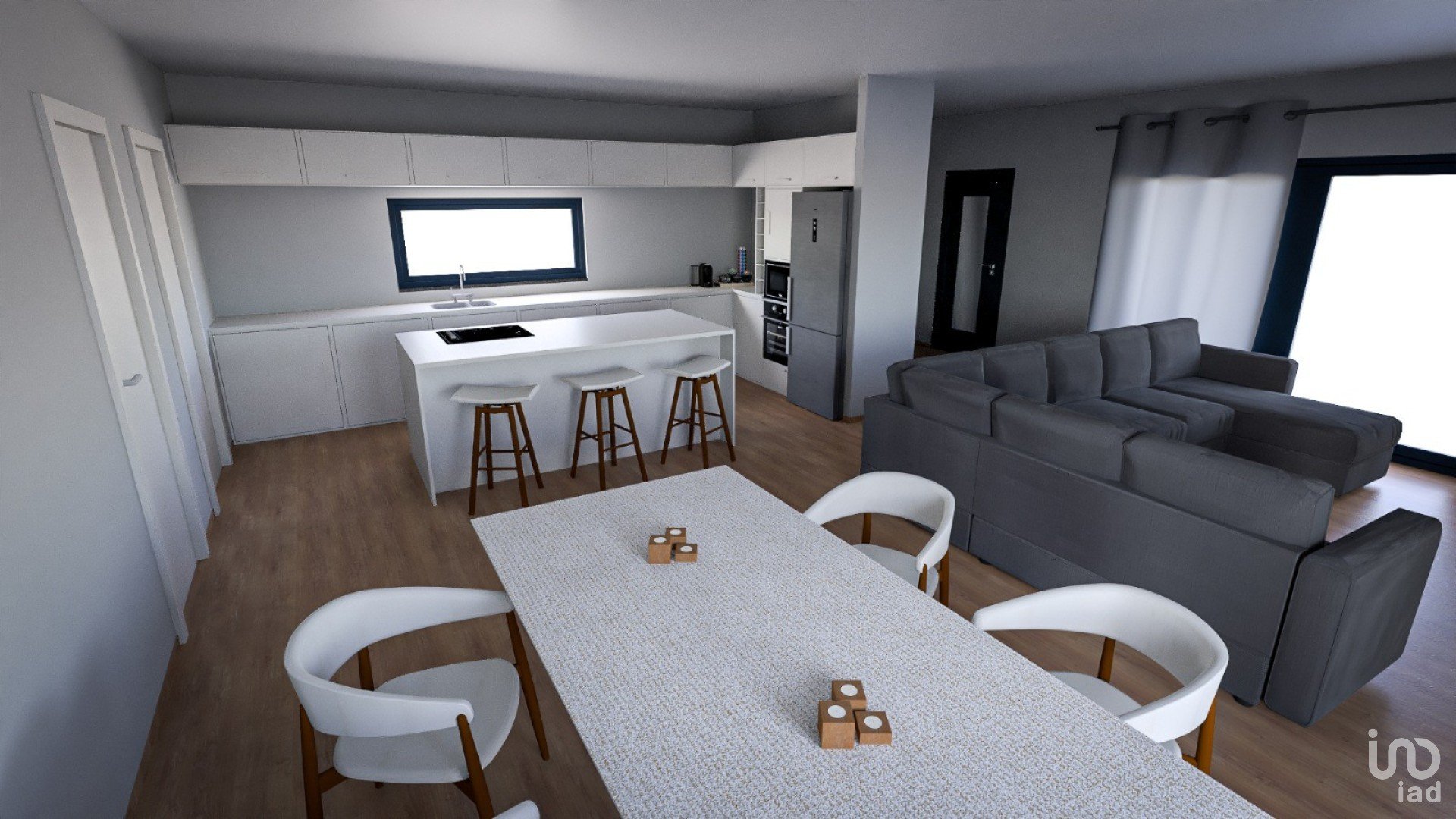 - Open space living and dining room with kitchen, about 60 m2