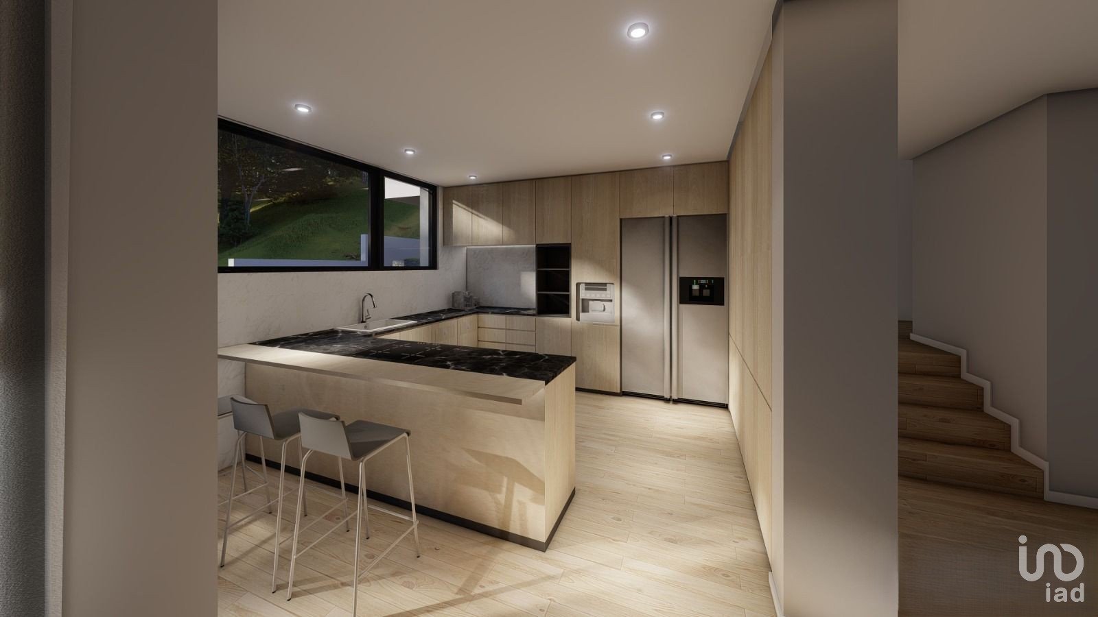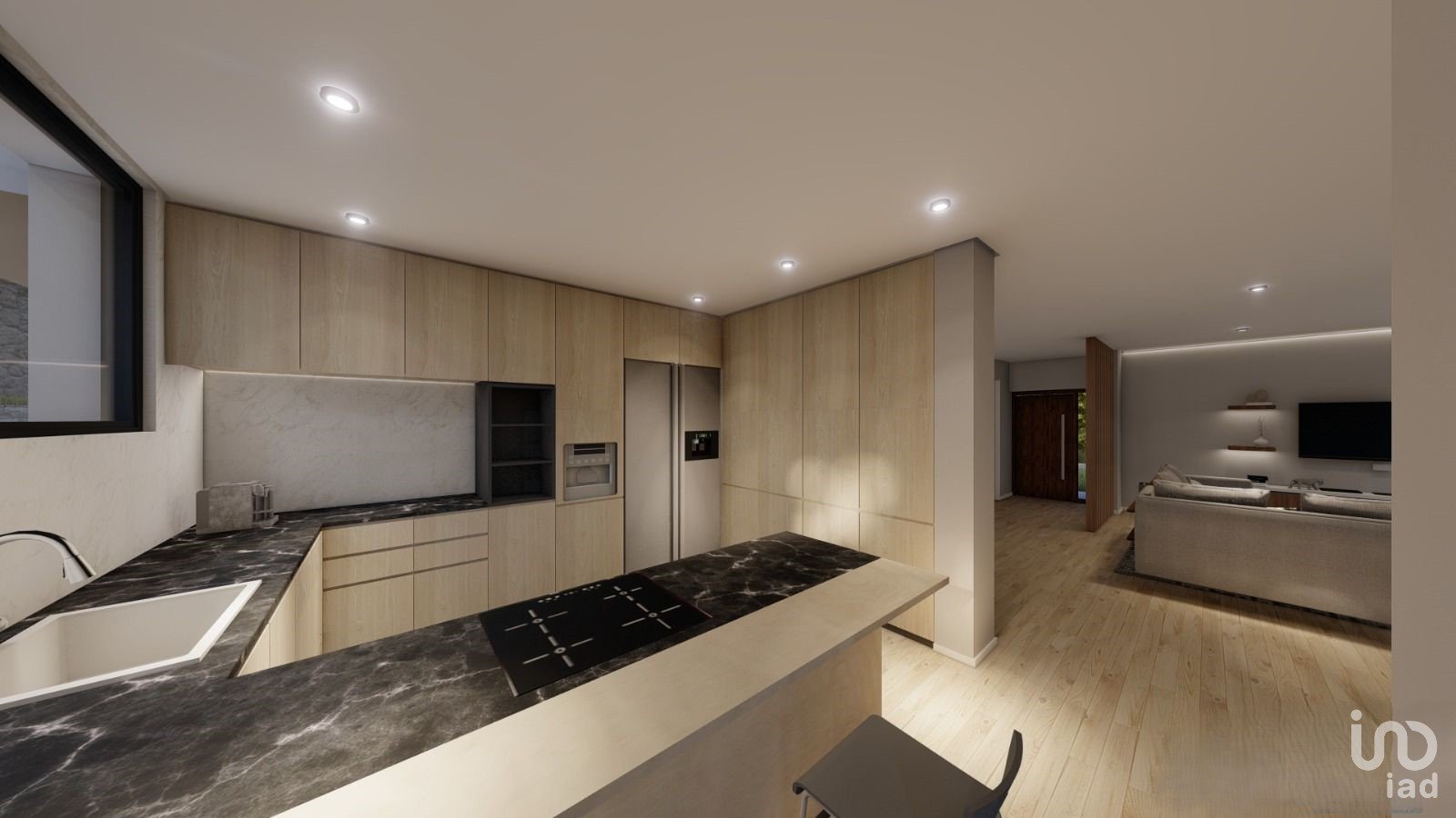 On the first floor, there is a living and dining room integrated in an open space concept with the kitchen, complemented by a service toilet.