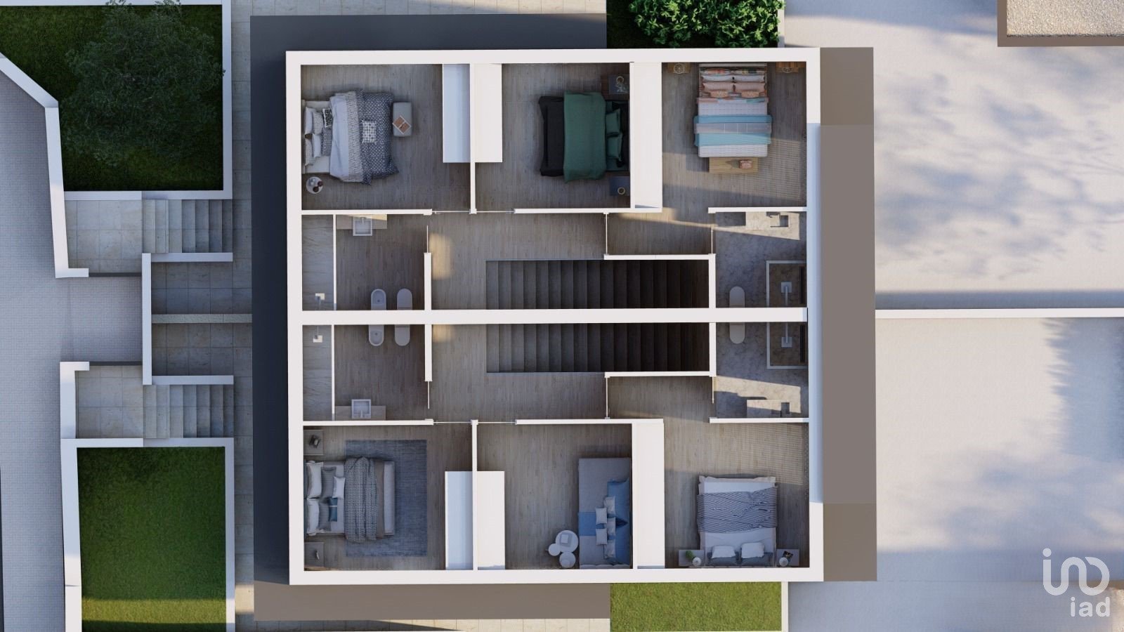 The second floor has three bedrooms, one of which is a suite, as well as a support bathroom.