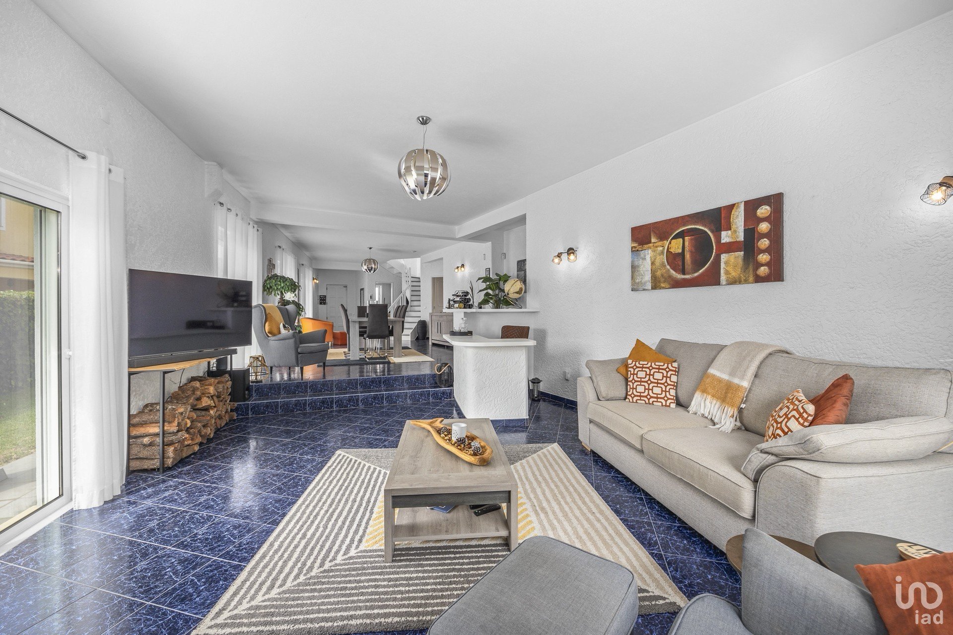 The kitchen also leads to a large open plan lounge/dining room with large