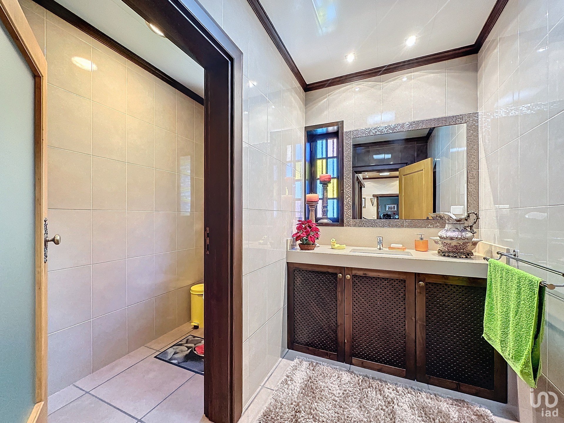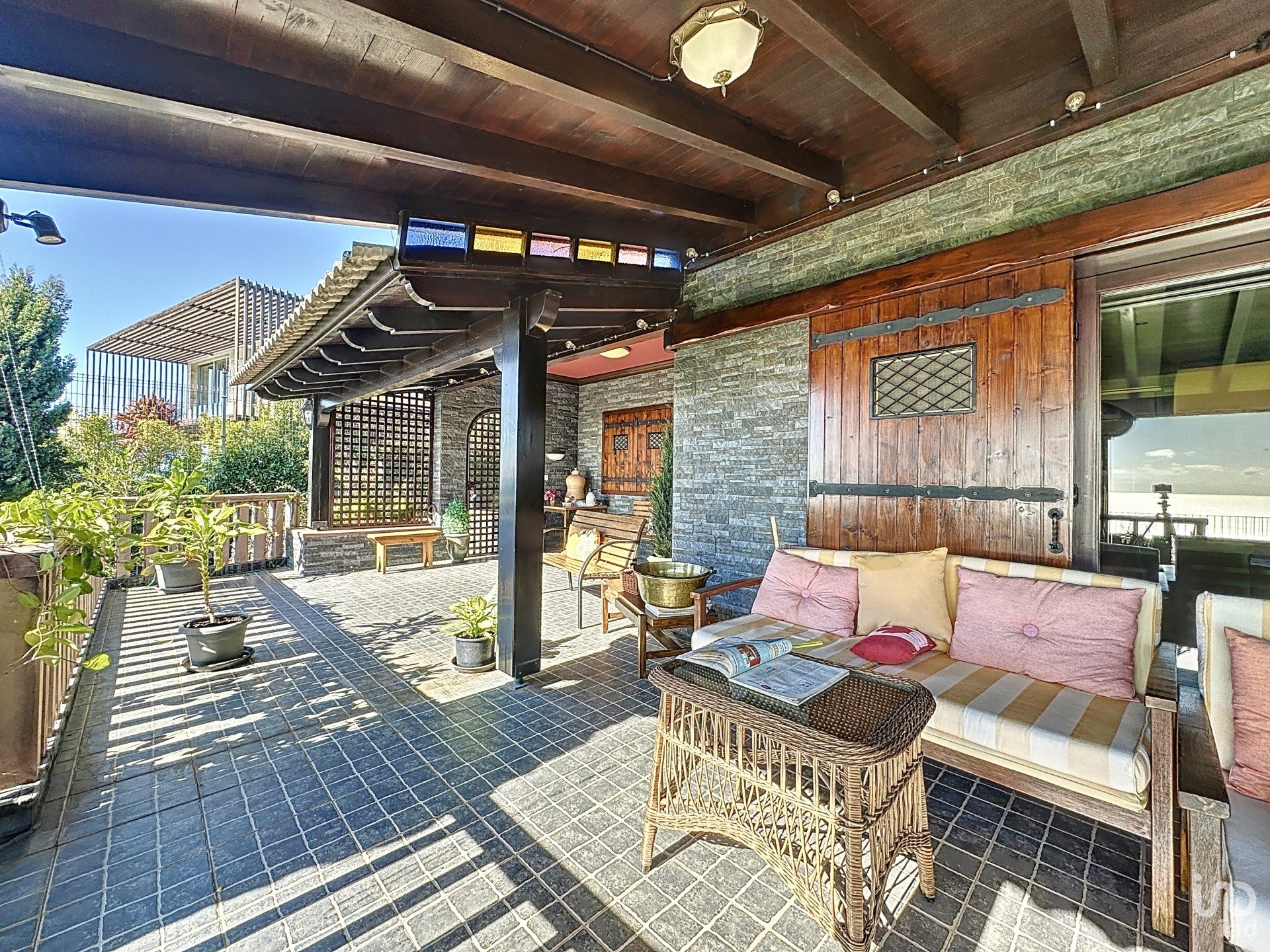 Upon entering this unique residence, it is impossible not to be amazed by the grandeur of its interiors. The meticulously crafted wooden false ceiling adds a sense of warmth and sophistication, harmoniously complementing the house’s classic décor. The solidity of the construction is evidenced by the solid wood door and window frames, equipped with double glazing, ensuring excellent acoustic and thermal insulation.
