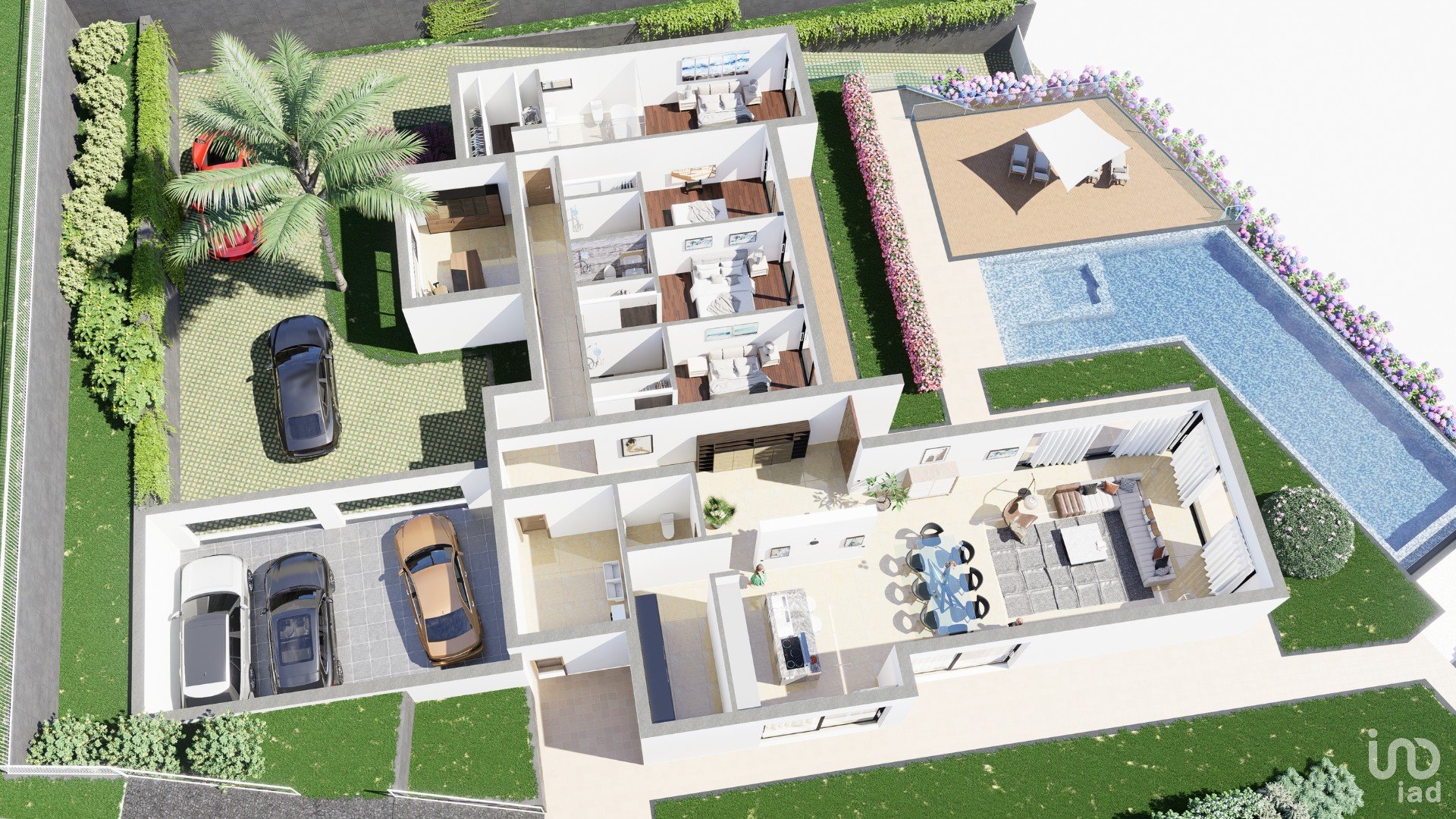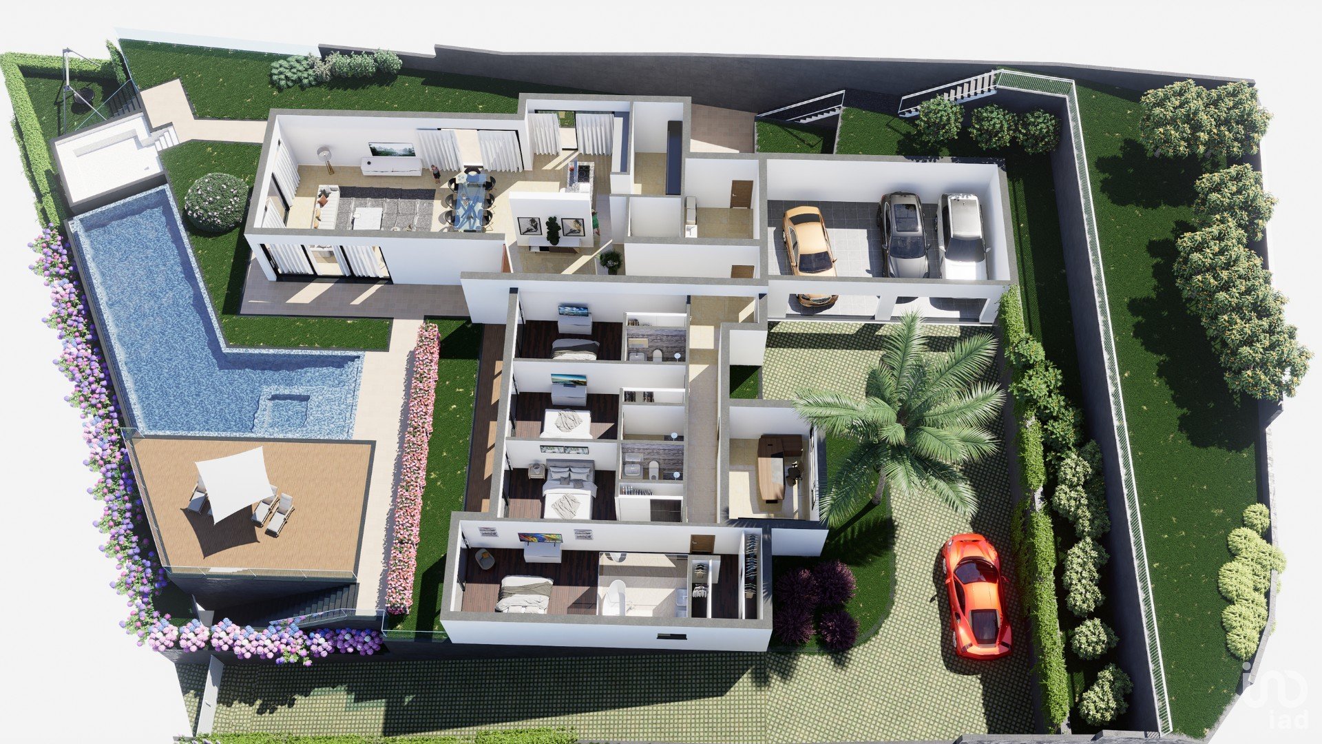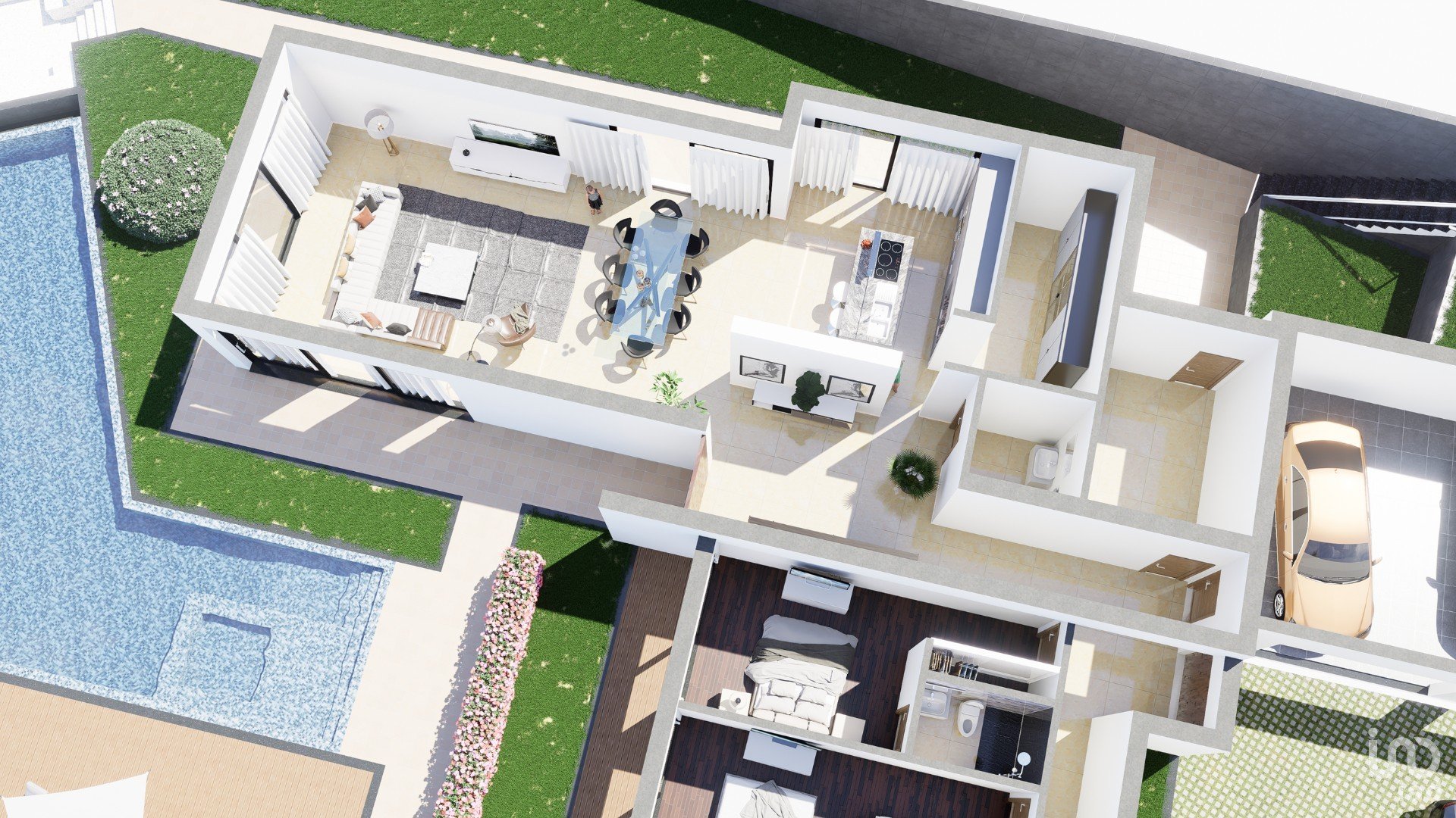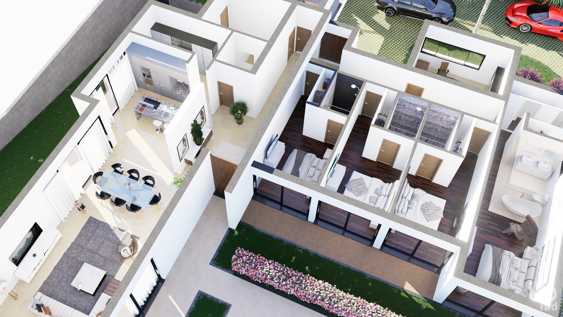 The interior areas are an example of intelligent and functional design. The layout of the spaces flows naturally, creating a sense of openness and connection between different areas of the house. The kitchen is a dream come true for any culinary enthusiast, with high-quality appliances and a layout that facilitates the preparation of delicious meals.