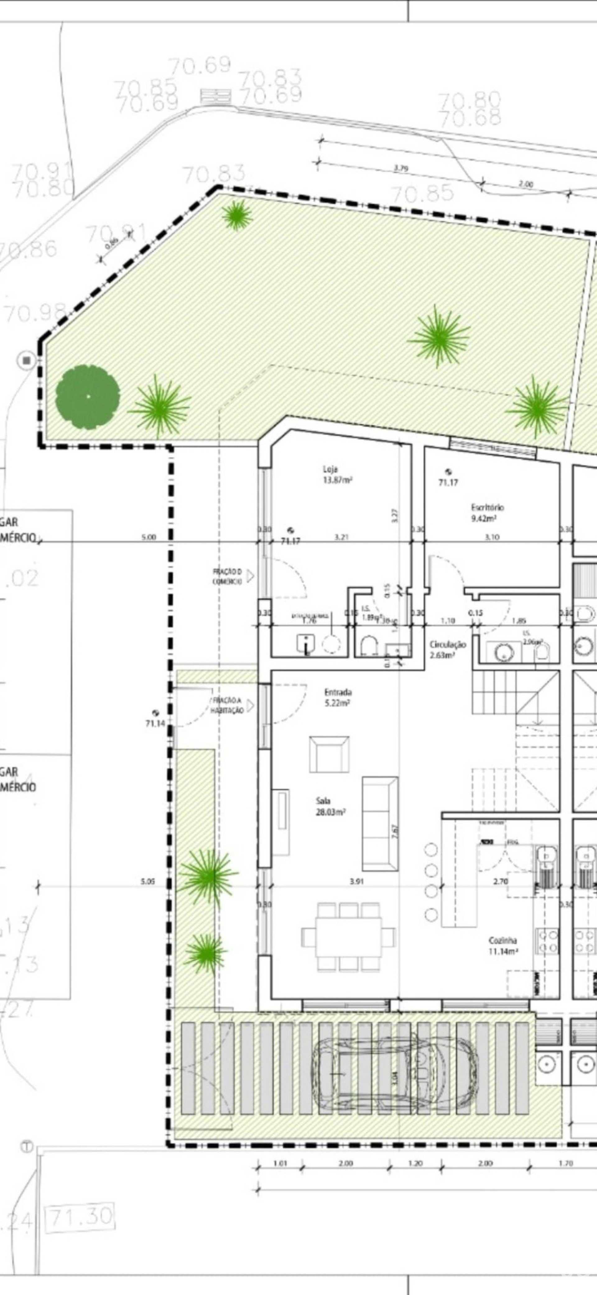 The house is distributed harmoniously and with good use of space. The social area consists of an entrance hall, living room of 28m2 with direct access to the kitchen (openspace) of 11m2, guest toilet and office of 9.40 m2, with direct views of the garden.