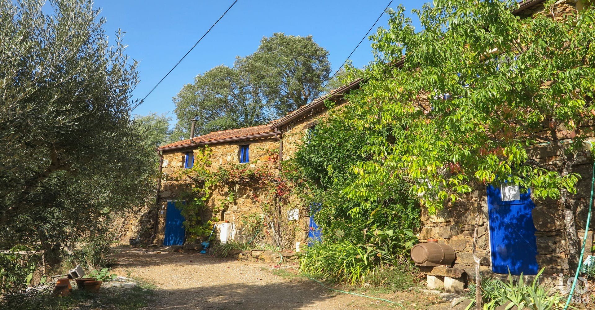 The land with an area of almost 20,000 sqm is very fertile because of the abundance of water. It has an abundance of fruit trees including pear, apple, plum, fig, lemon, orange, peach, and nectarine. There are also 40 olive trees and many herbs, shrubs, and plants. There are gardens and raised beds ideal for growing vegetables and lots of land for keeping animals such as chickens, goats, and sheep.