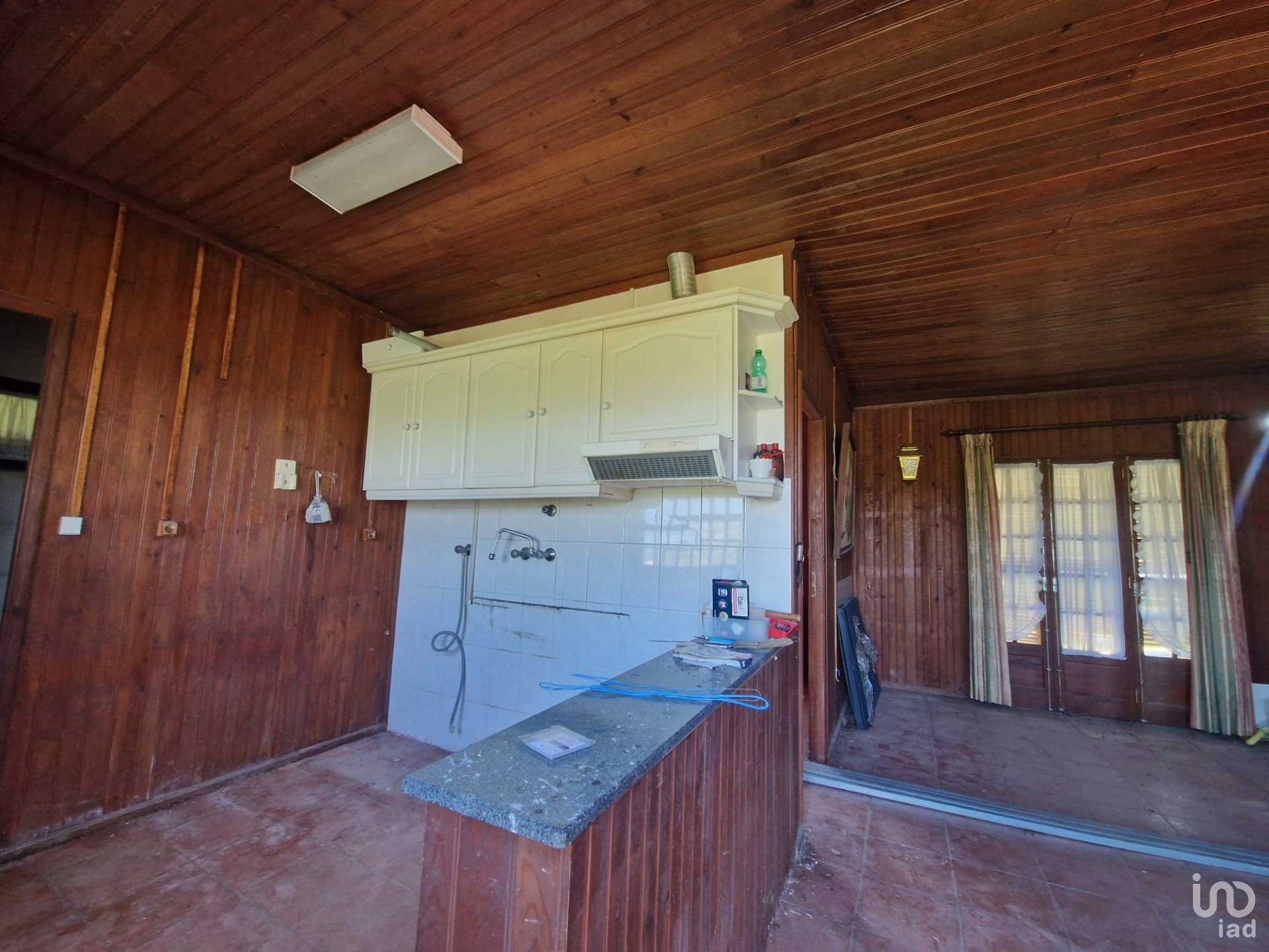 The wooden house is a one-bedroom and needs to be remodelled.