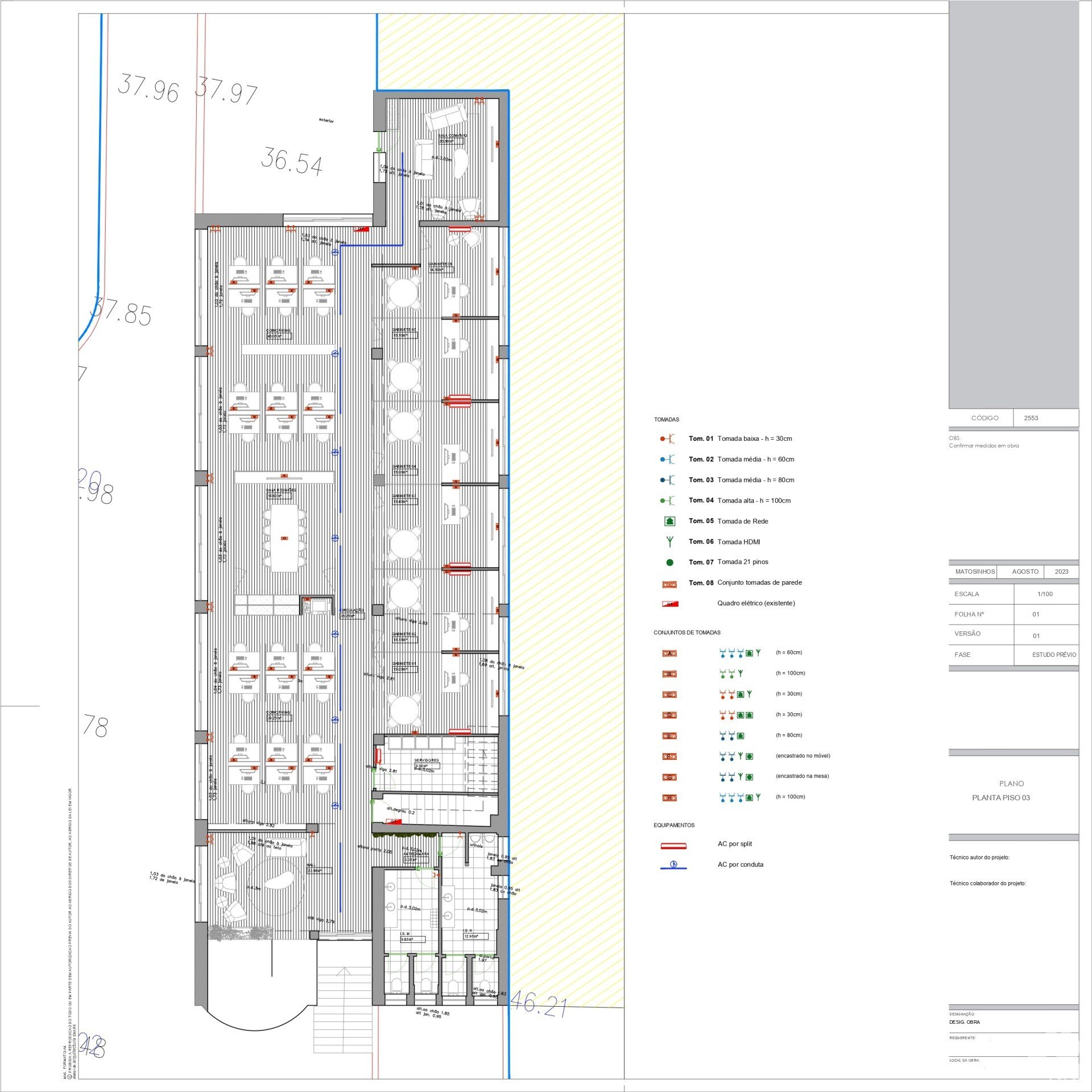 Divided into 4 floors (basement, ground floor, 1st and 2nd floors), this office is located on the 2nd floor, with a separate entrance accessible through common areas (basement) that include social areas and a cafeteria, perfect for breaks and interaction between teams.