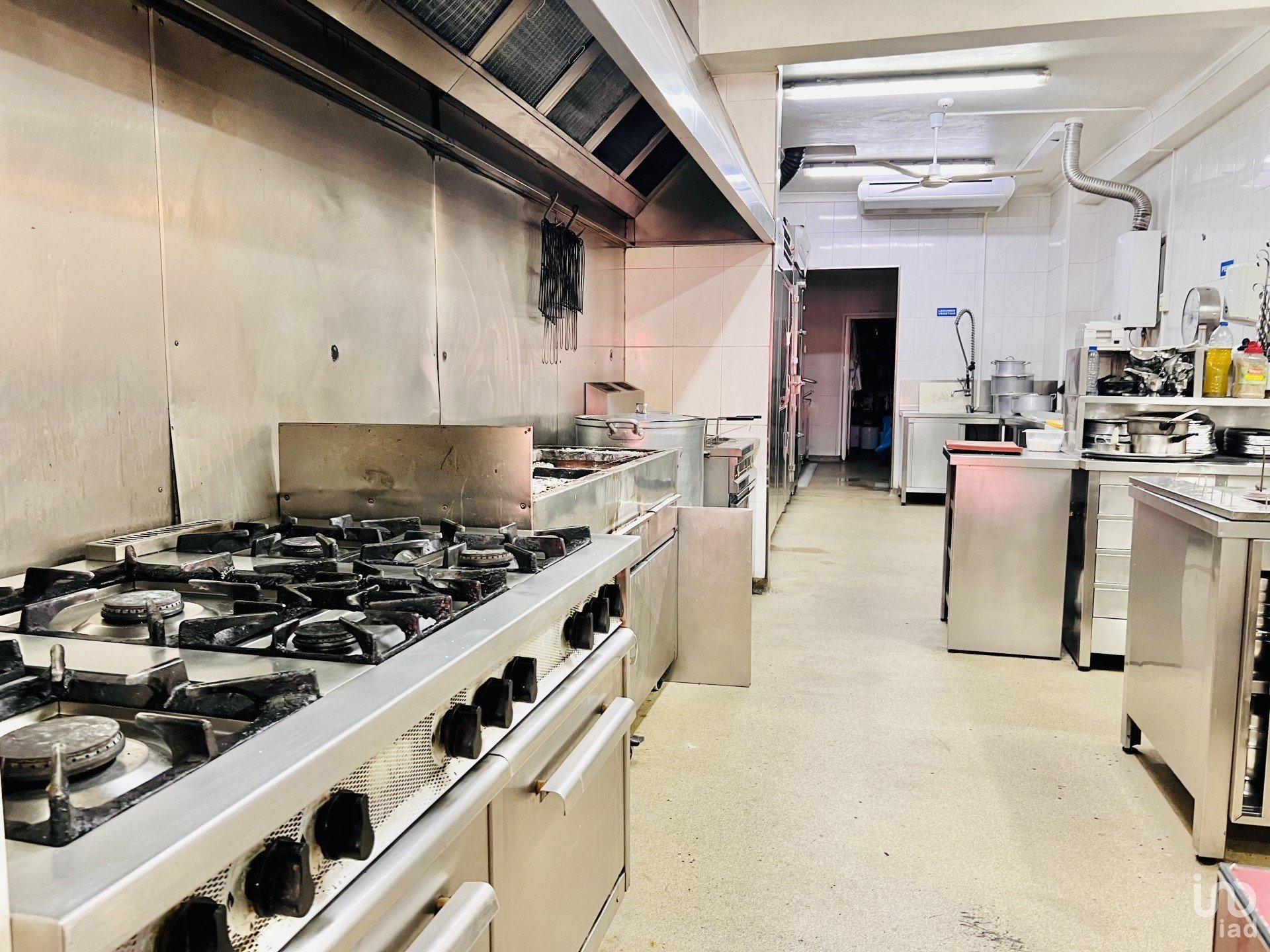 Kitchen equipped with all necessary appliances, including industrial stove, oven, refrigerator, freezer, and other equipment in perfect condition.
