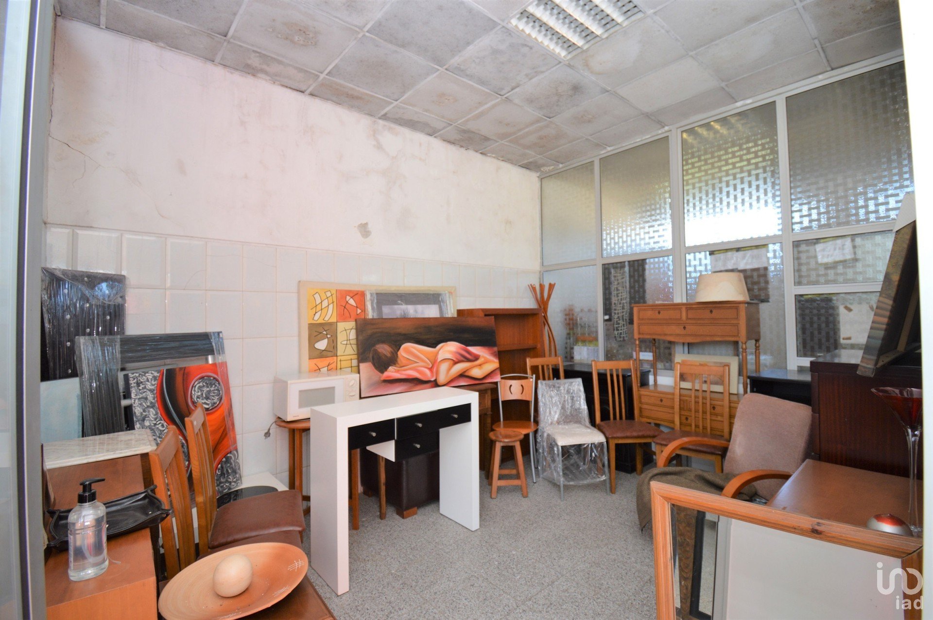 Large commercial space with various business possibilities: workshop, exhibition, restaurant/bar, varied trade... with a covered area consisting of lounge, main display, with large glass windows and bathroom.