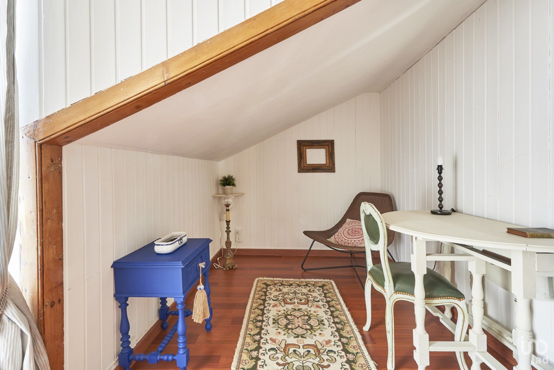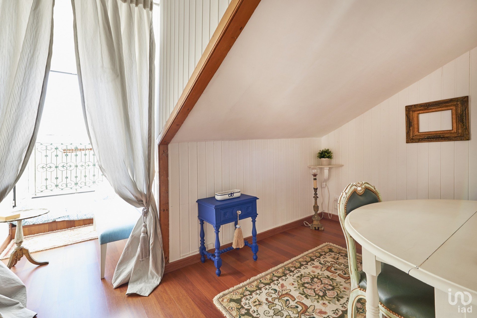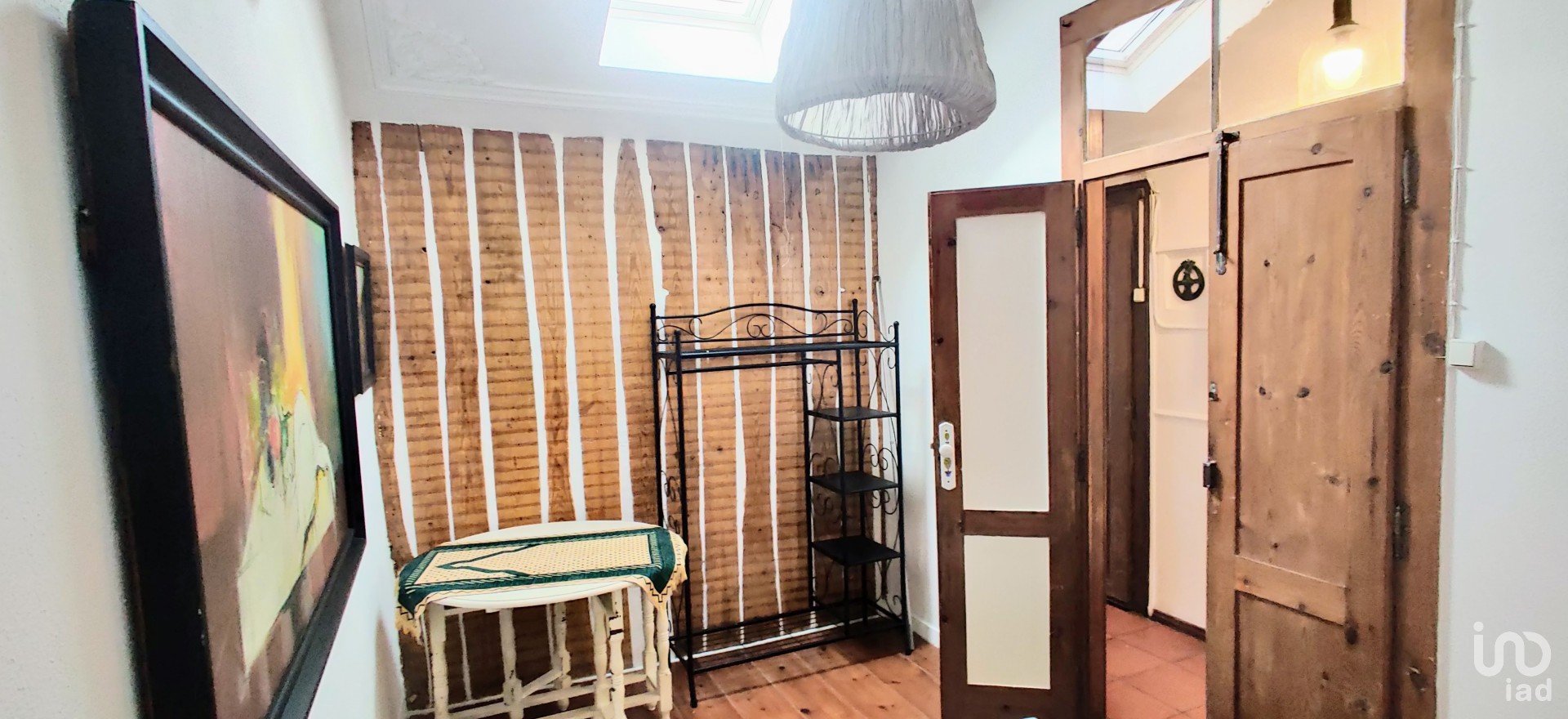 A porta do apartamento abre para um corredor que dá acesso a todas as divisões da casa. Numa das extremidades há um quarto com uma ampla cama de solteiro, mas com espaço para mais uma se for necessário. Há uma janela ampla e uma varanda estreita com vista para a rua abaixo.