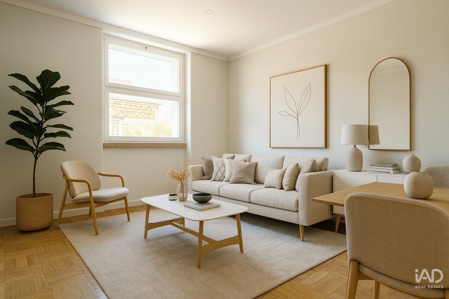 La cuisine est entièrement équipée d'appareils électroménagers modernes : réfrigérateur, four, cuisinière, micro-ondes, lave-linge et lave-vaisselle. Le salon, lumineux, spacieux et fonctionnel, offre un espace de vie chaleureux et confortable.