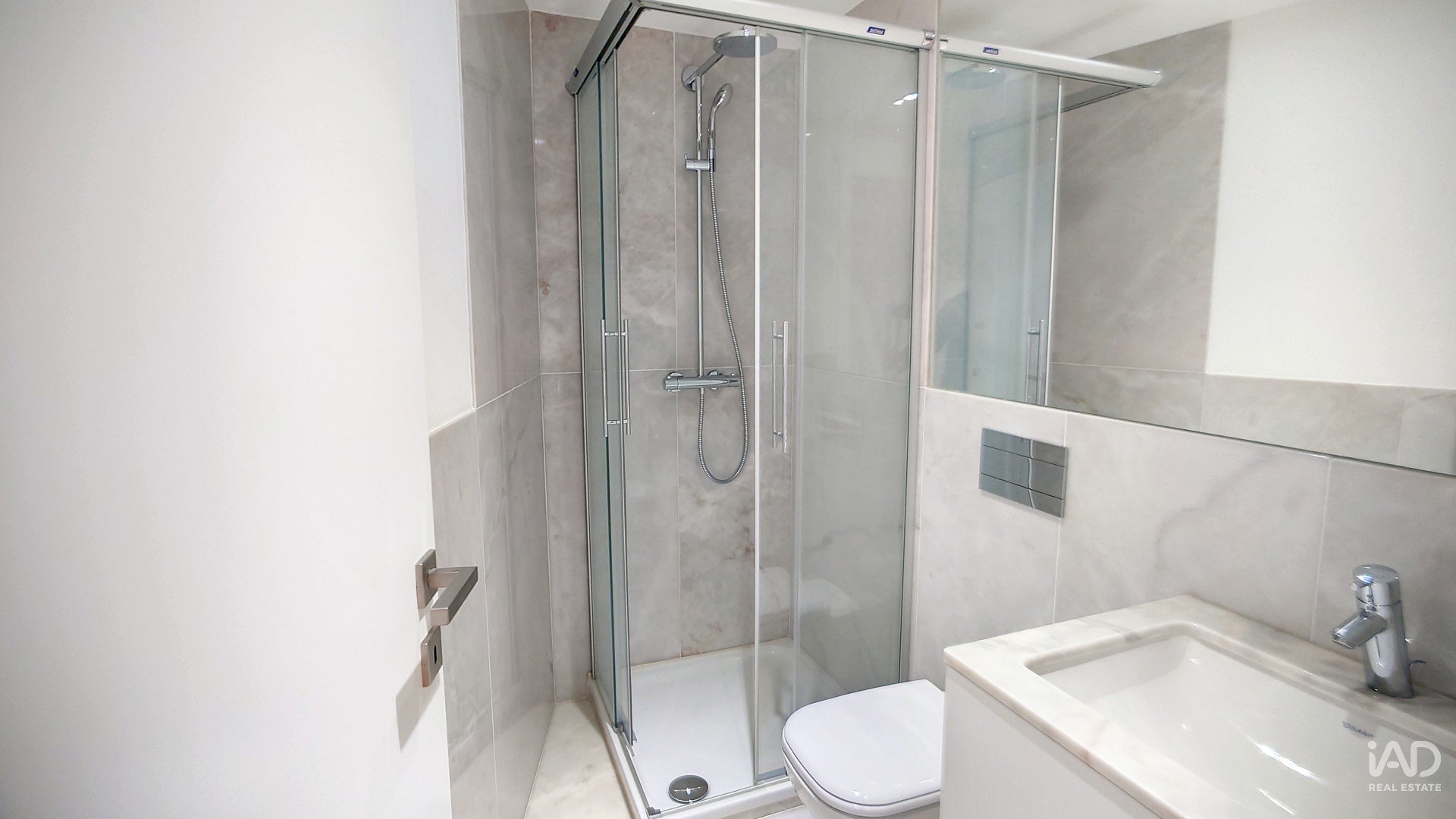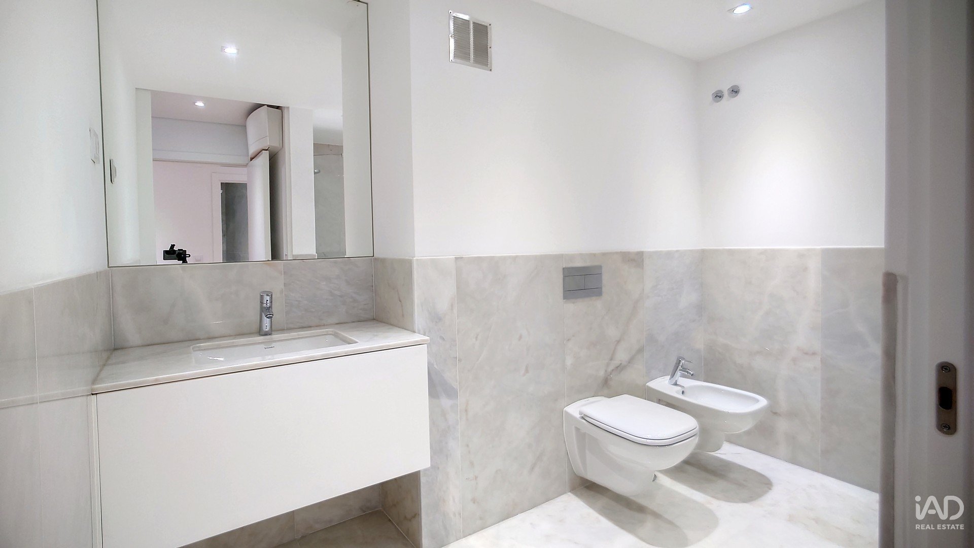 Janelas de vidro duplo com isolamento térmico e acústico, pavimento multicamada em madeira de Afzélia, casa de banho com paredes e pavimento de mármore de Estremoz e ar condicionado em todas as assoalhadas.