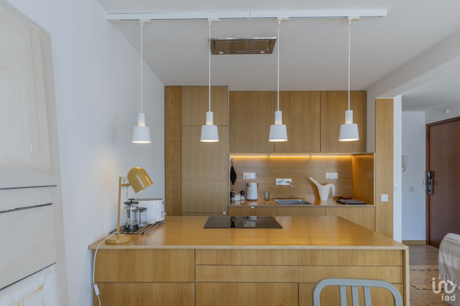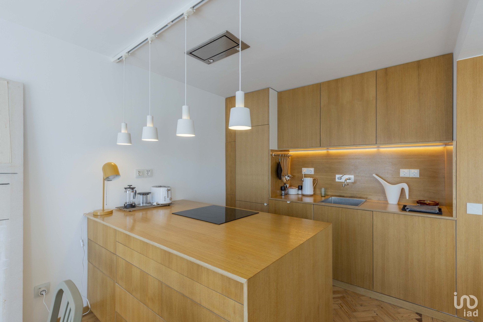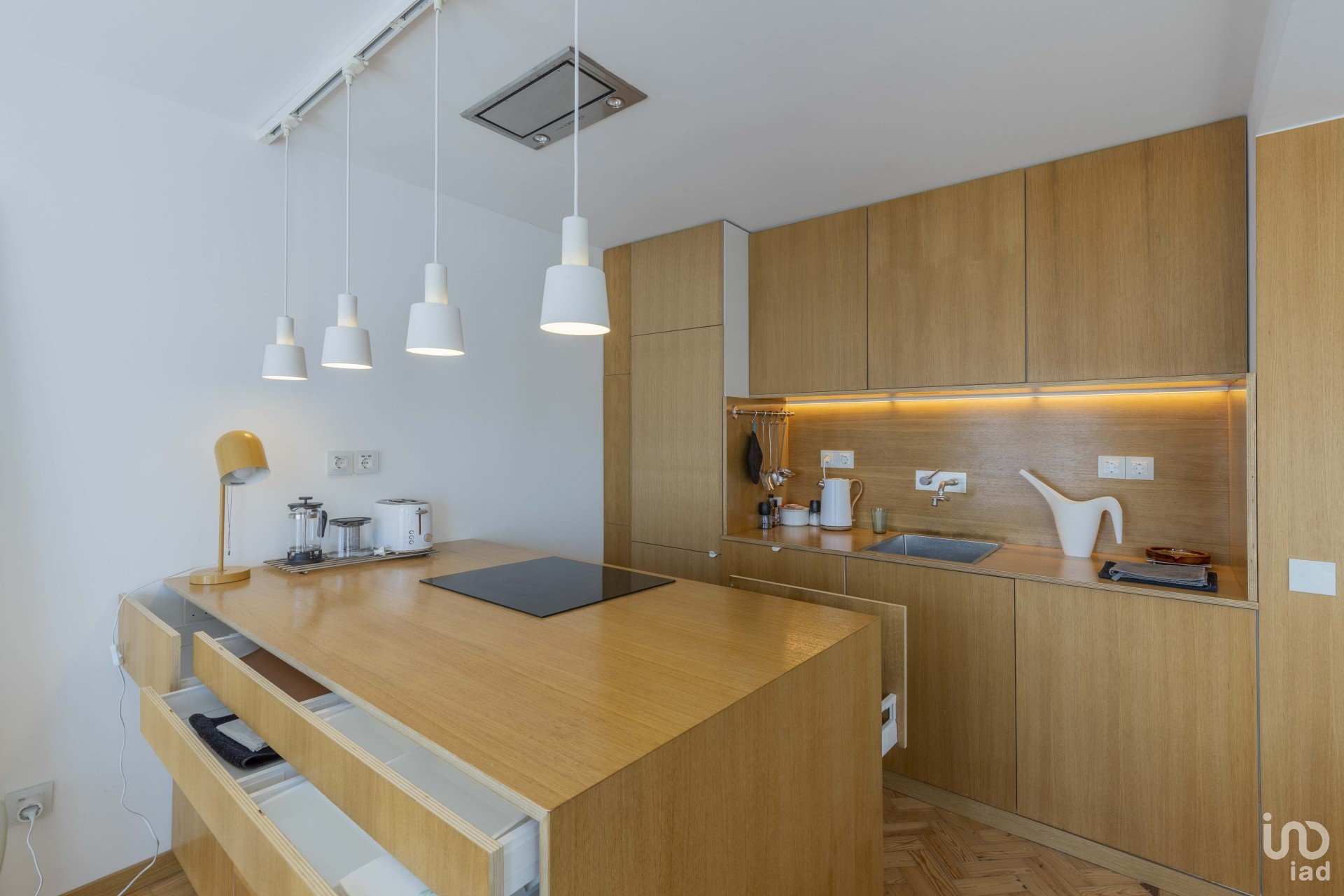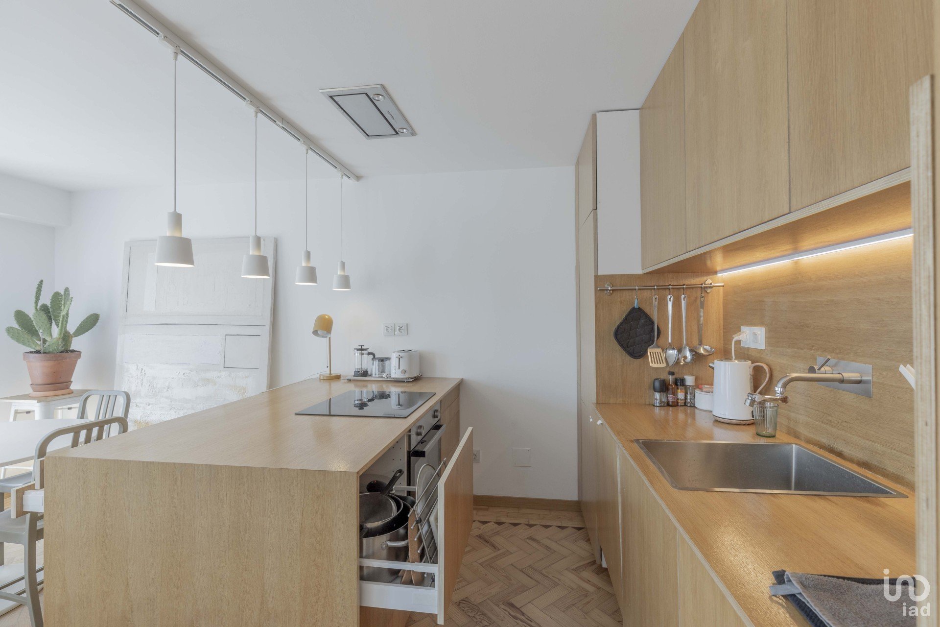 La cuisine fait partie d’un vaste espace ouvert de 40 m², entièrement équipé avec des appareils modernes et économes en énergie. L’appartement fonctionne exclusivement à l’électricité, sans besoin de gaz.