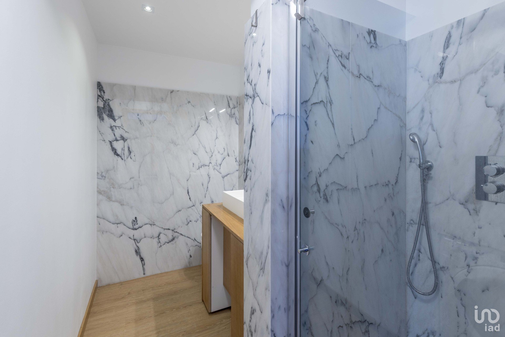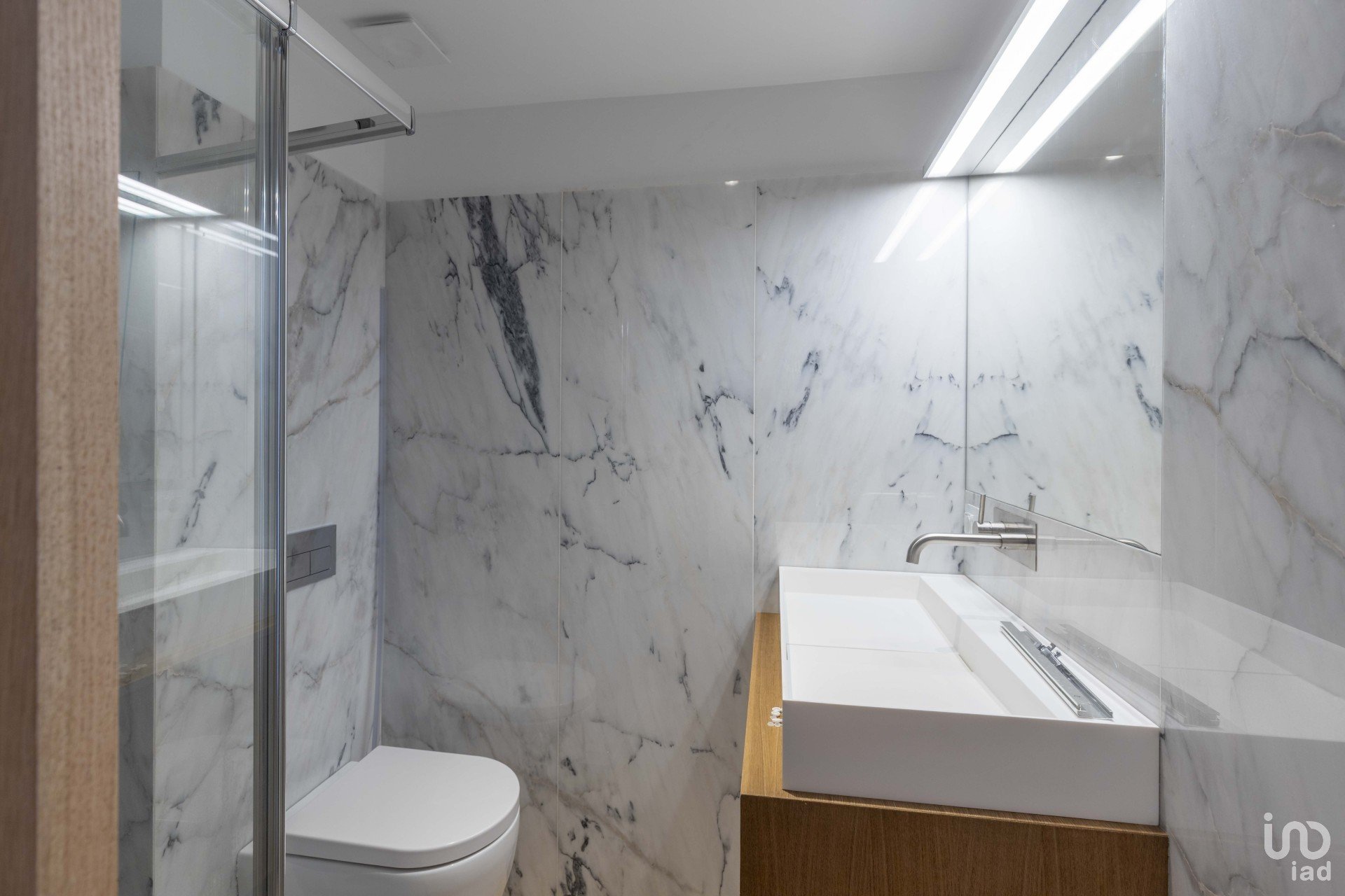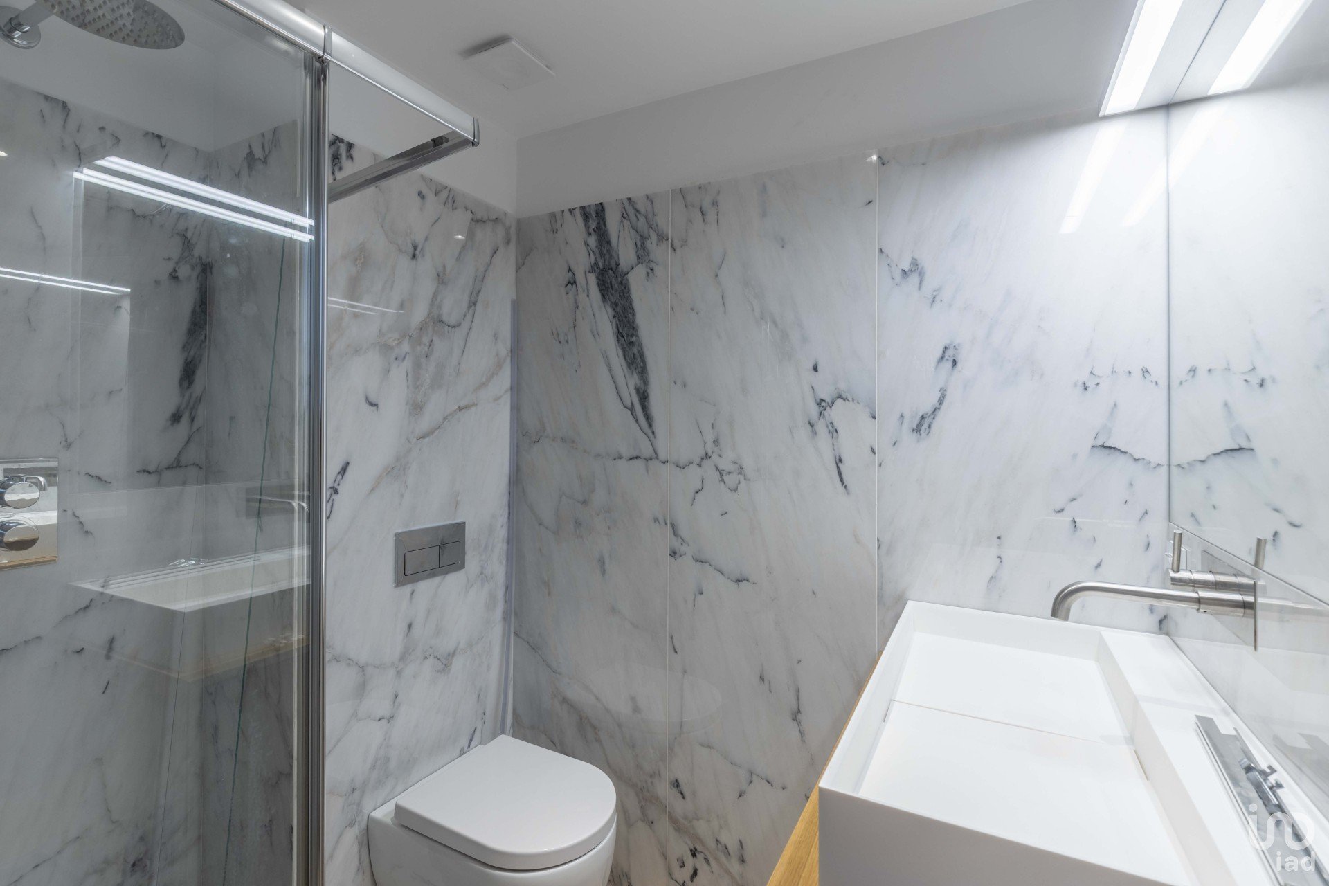 Les salles de bains sont revêtues de panneaux élégants en marbre (2,20 m de hauteur, 20 mm d’épaisseur), alliant sophistication, durabilité et facilité d’entretien.