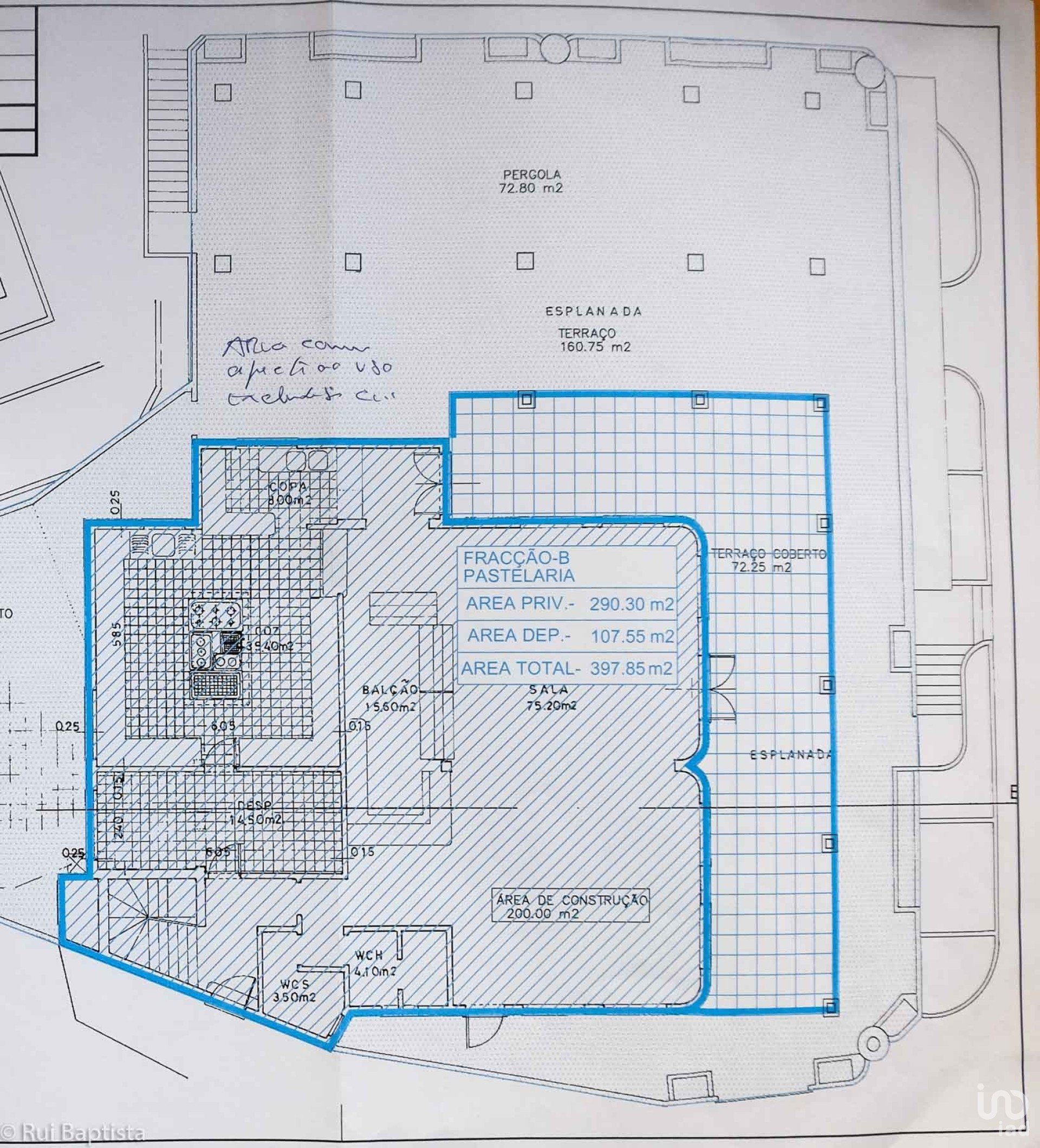 Surface totale: 397 m2, restaurant avec 200m2, terrasse avec 97 m2.