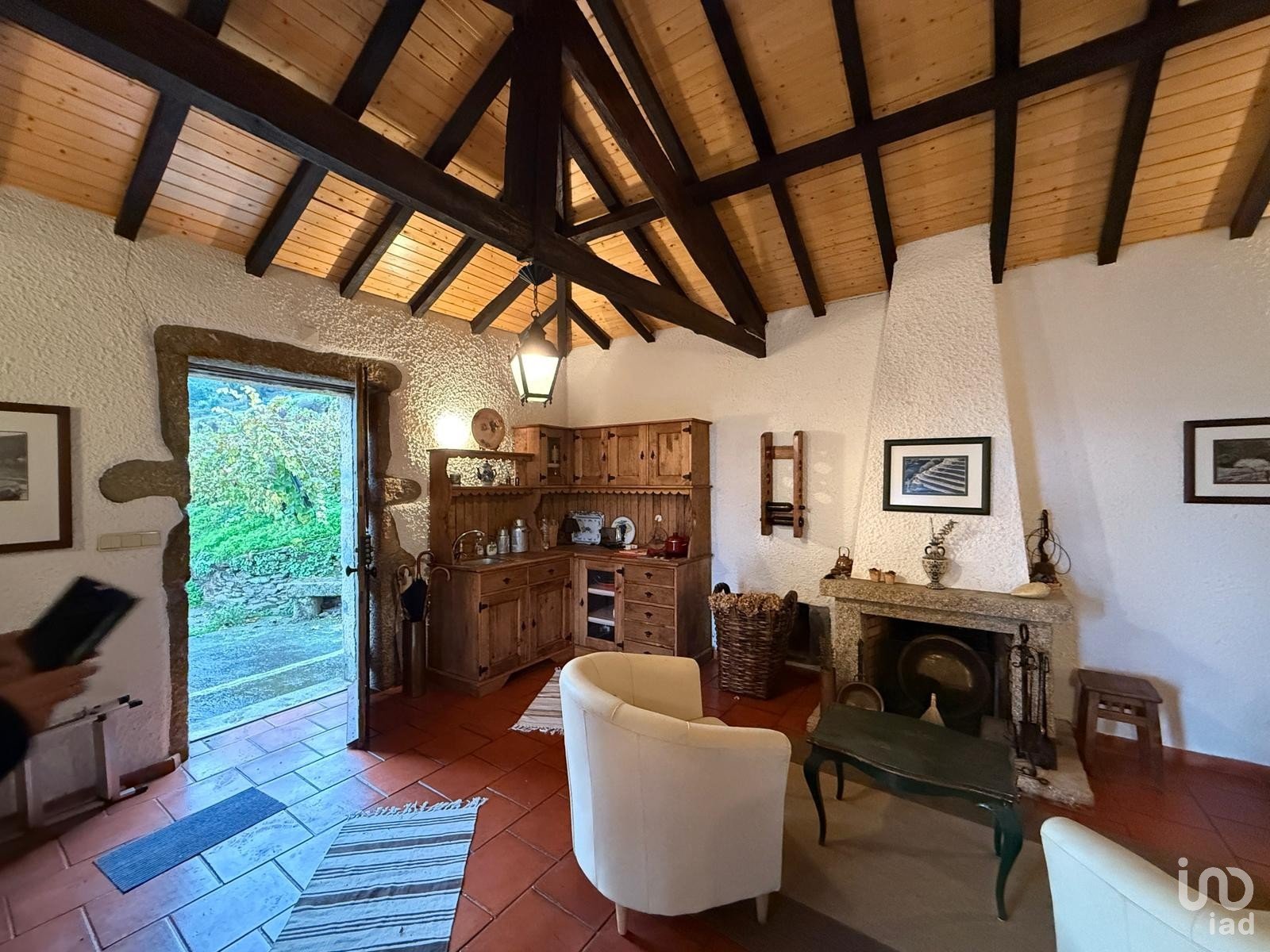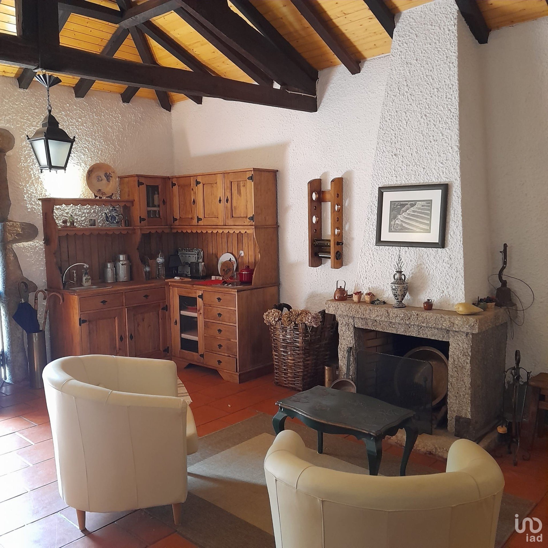 - A casa principal, construída em granito e xisto, é distribuída por dois pisos com 54 m² cada, totalizando 108 m² de área útil.