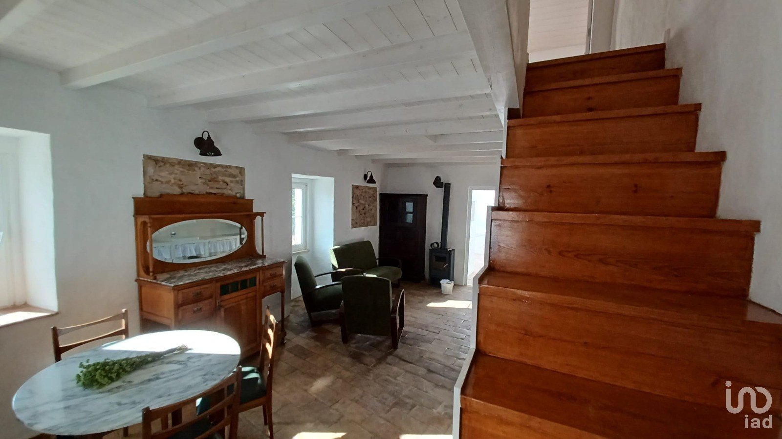La maison bénéficie d'un patio extérieur avec une petite piscine avec fontaine à circuit fermé, la pompe et le filtre garantissent la propreté et la qualité de l'eau. La maison est équipée d'appareils électroménagers neufs, d'un chauffe-eau de 250L pour le chauffage de l'eau chaude sanitaire, d'un poêle dans le salon, de ventilateurs thermiques à faible consommation dans les chambres et la salle de bain pour le chauffage et le refroidissement. Construction en pierre et en torchis, restaurée avec des techniques de construction traditionnelles.
