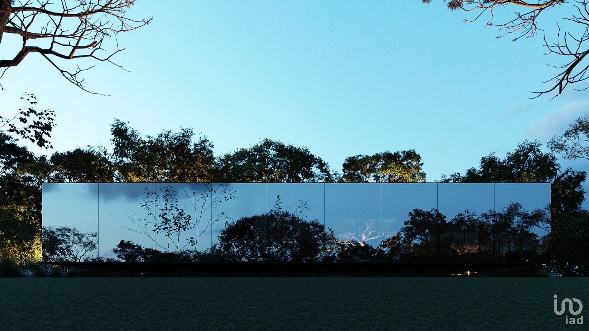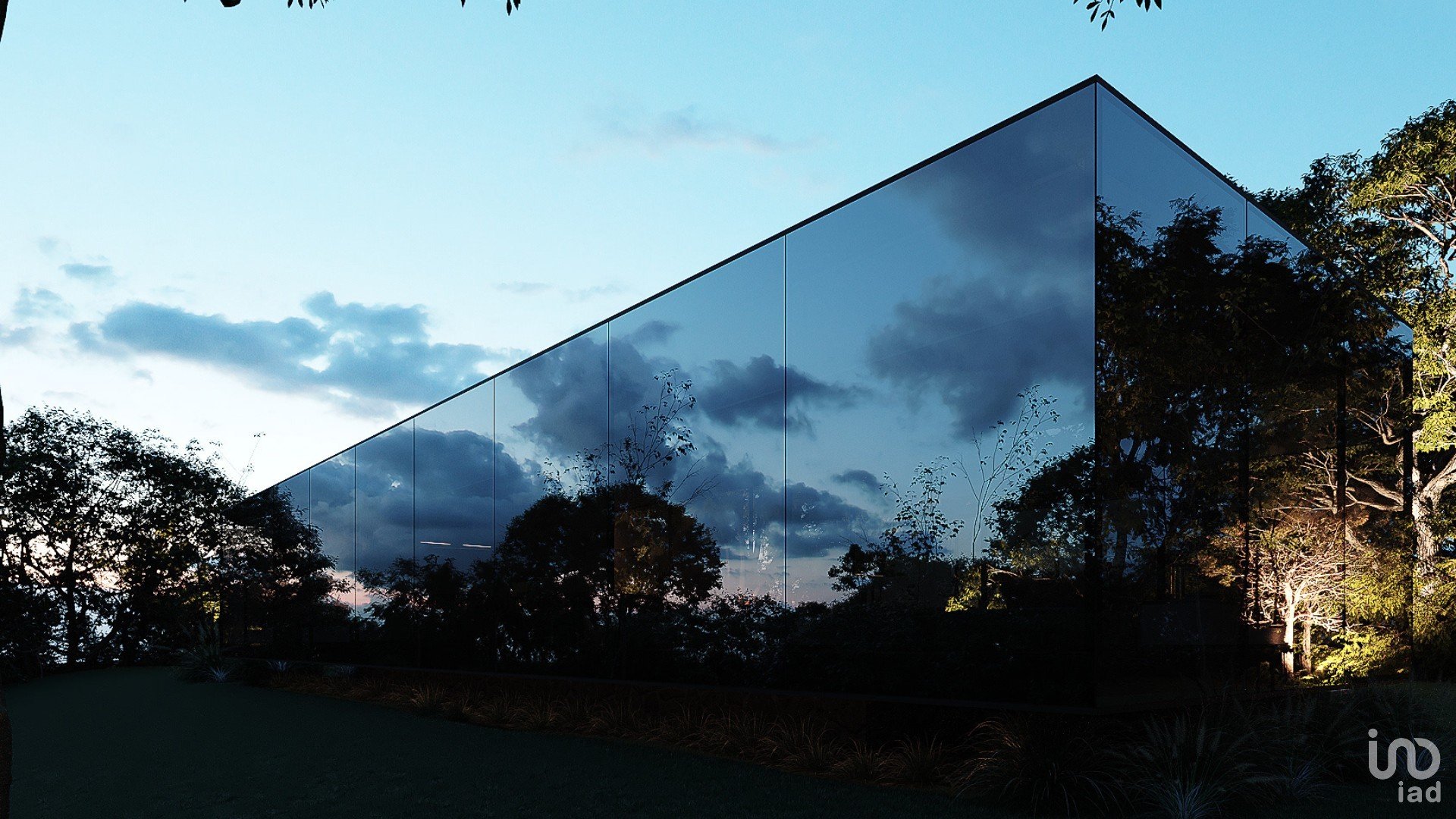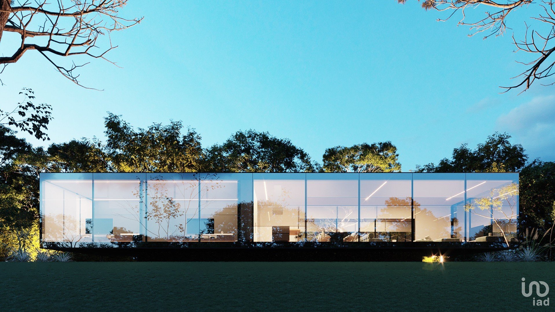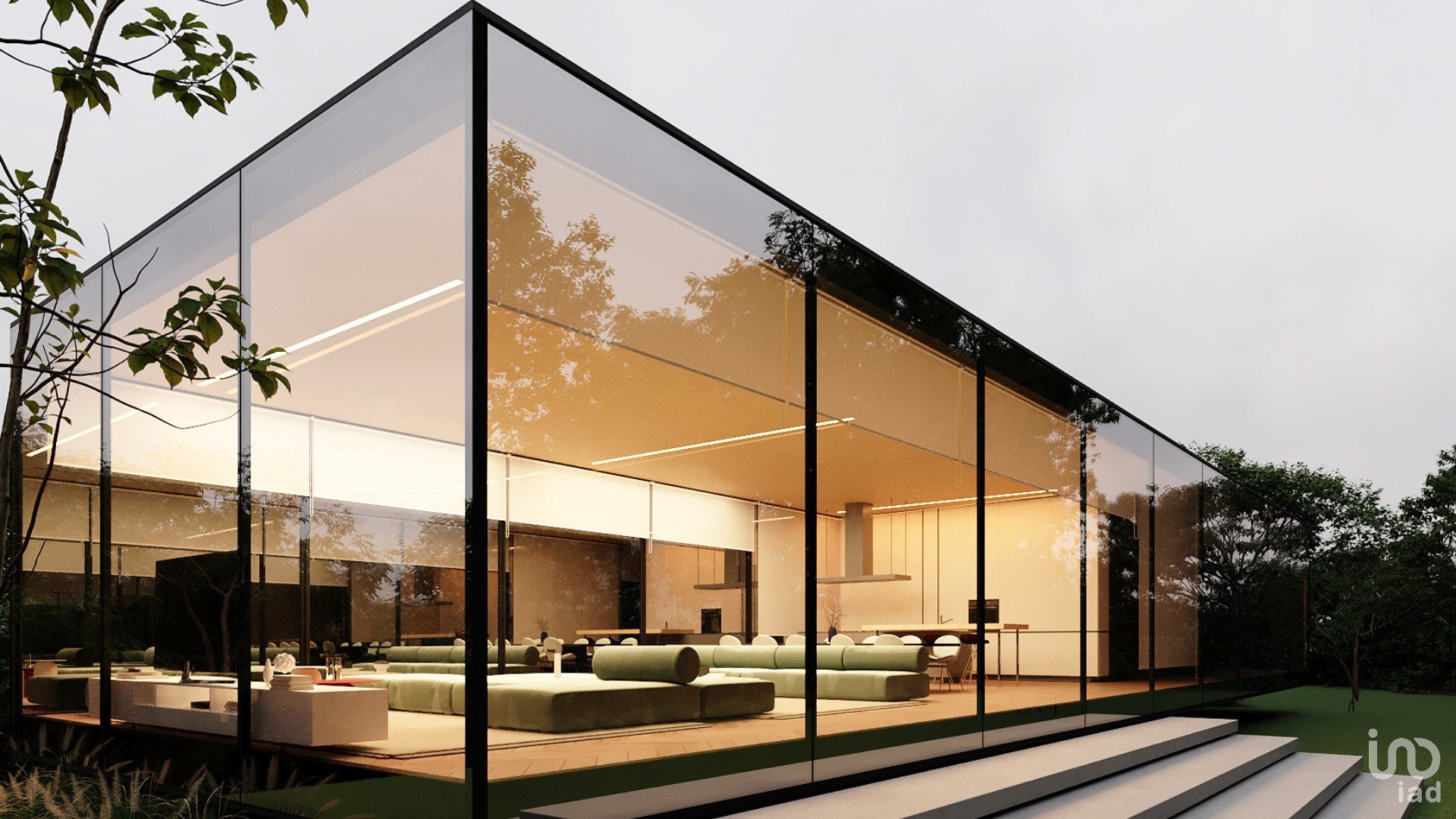 Maison d'un seul niveau en verre.