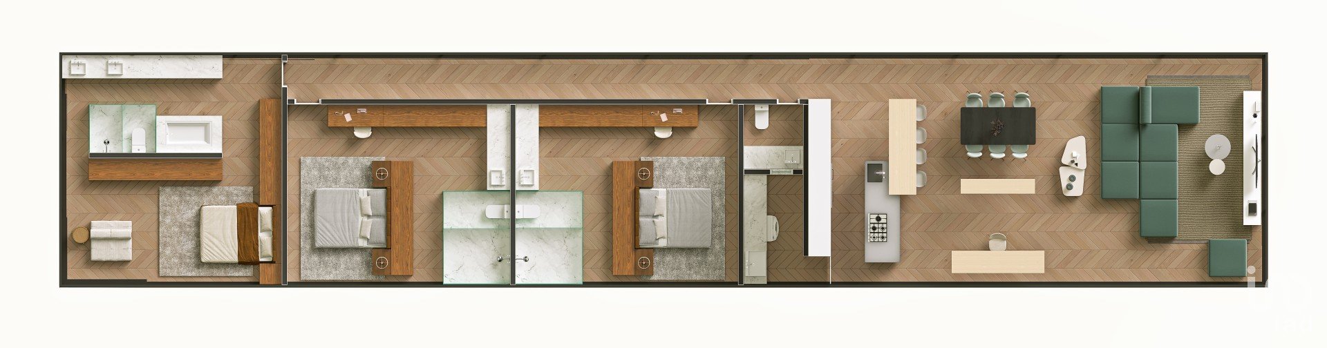 Lavabos séparés pour lui et pour elle dans les salles de bains.