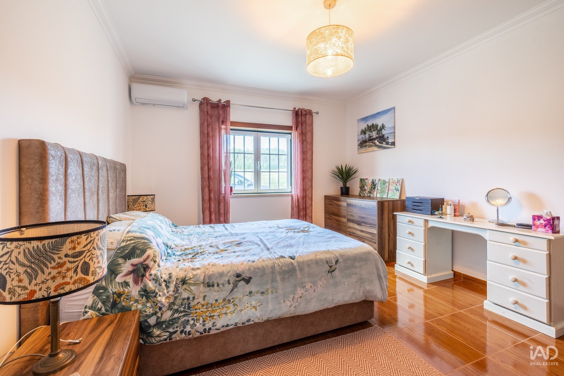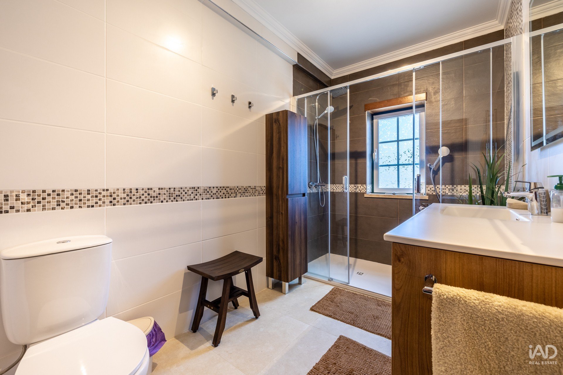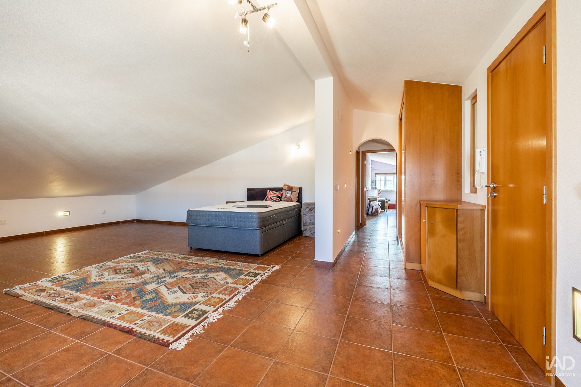 La maison, qui comprend 3 chambres, un salon, une cuisine avec cellier et deux salles de bains complètes au rez-de-chaussée, dispose d'un grand grenier avec 2 pièces, un bureau et une salle de bains, avec entrée indépendante.