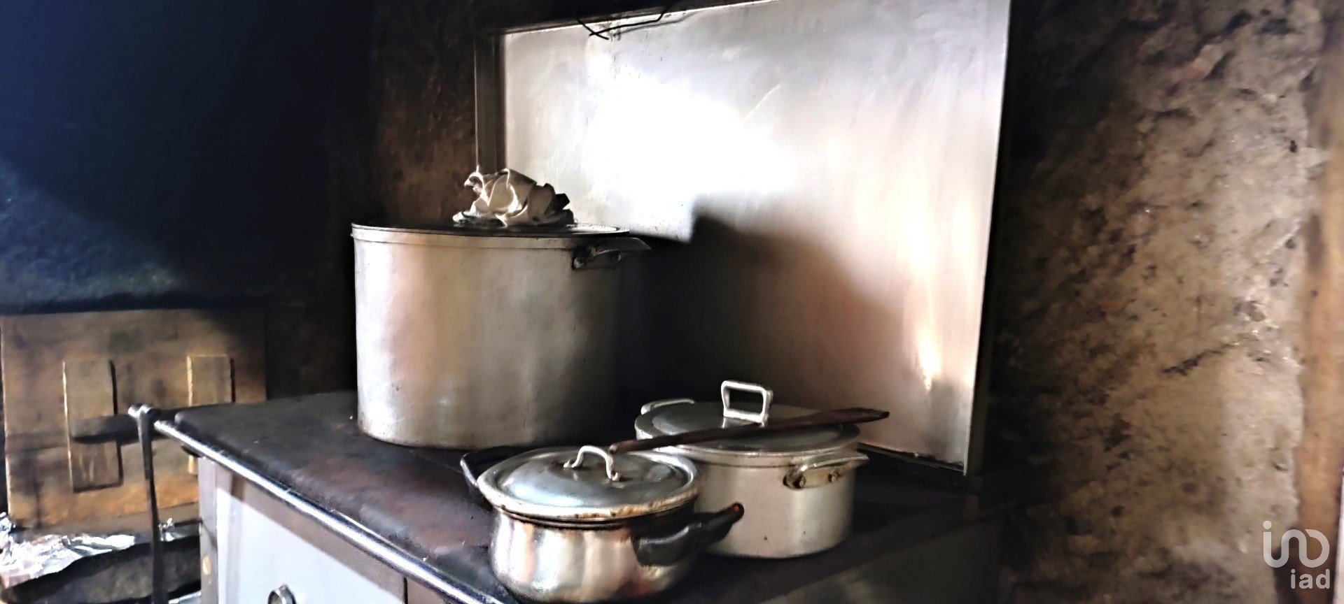 Dans l'autre, nous avons une cuisine, avec un poêle à bois, un salon et une chambre.