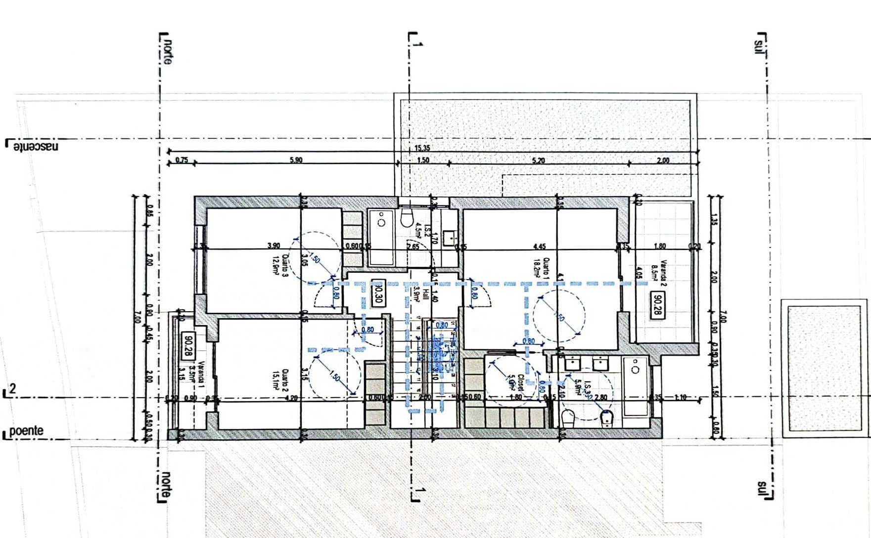 Au **premier étage**, vous trouverez une spacieuse **suite parentale de 18 m²** avec dressing et accès à une grande **balcon/terrasse**, idéal pour se détendre à l’extérieur. Deux autres chambres de **15,10 m²** et **12,90 m²**, toutes deux équipées de placards intégrés, offrent confort et fonctionnalité. La plus grande chambre dispose également d’un **balcon avant avec vue dégagée**.