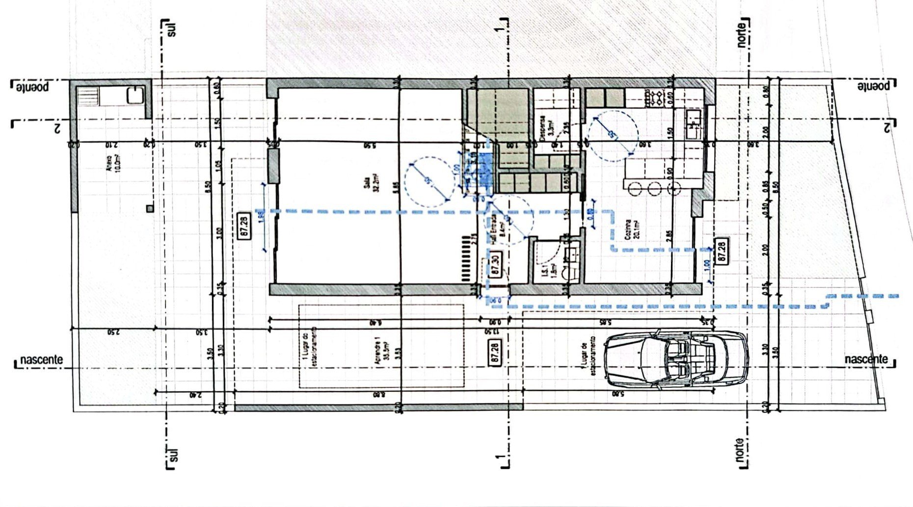 Au **rez-de-chaussée**, la pièce maîtresse est la **cuisine entièrement équipée de 20,10 m²**, complétée par un **cellier de 3,30 m²**. Le **salon**, avec ses **32,20 m² généreux**, constitue un espace idéal pour recevoir, avec un accès direct à une **cour agréable avec barbecue**, parfaite pour les repas en plein air. La cuisine donne également sur un **patio avant**, où se trouve un **stationnement privé pour un véhicule**.