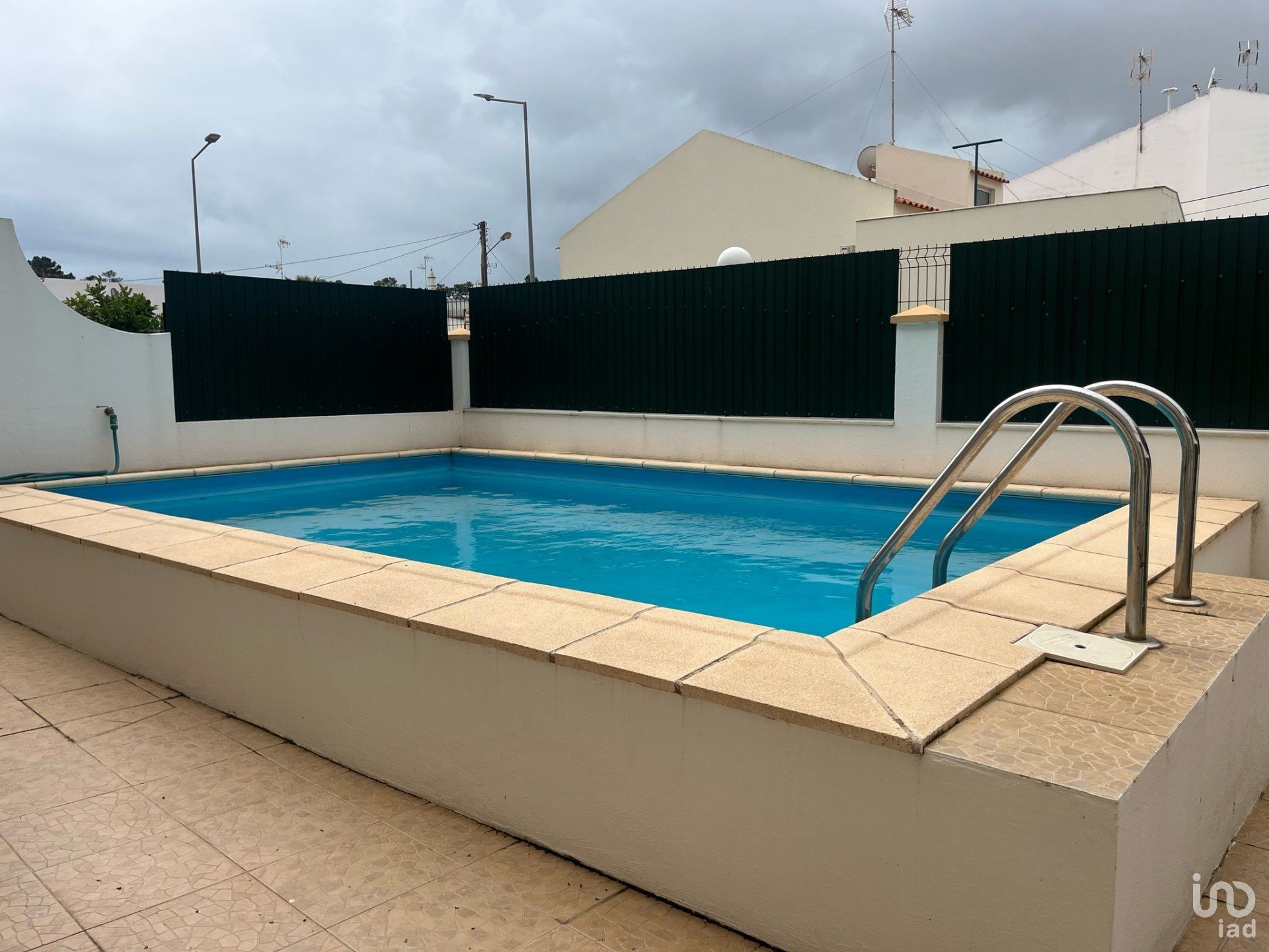 🌿 Jardim exterior com piscina, ideal para momentos de lazer, refeições ao ar livre