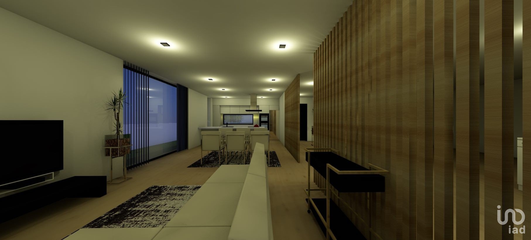 La villa se compose d'un hall, d'une cuisine et d'un salon ouverts, d'une buanderie, d'un WC d'invités, d'une suite, de deux chambres, d'un WC d'invités et d'un garage pour deux voitures avec accès direct à l'intérieur de la maison.