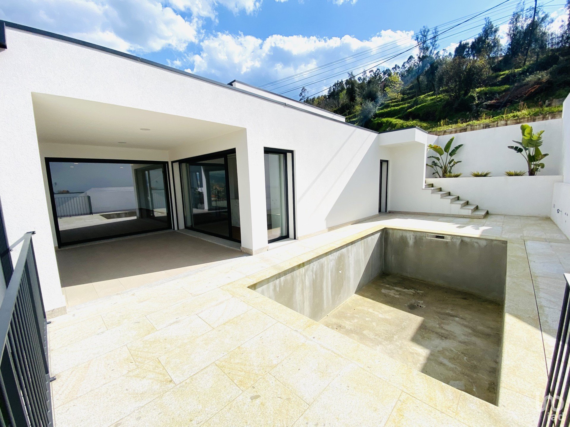Elle dispose également d'un porche pour deux voitures, d'une salle des machines, d'espaces extérieurs couverts et d'une piscine avec tous les équipements.