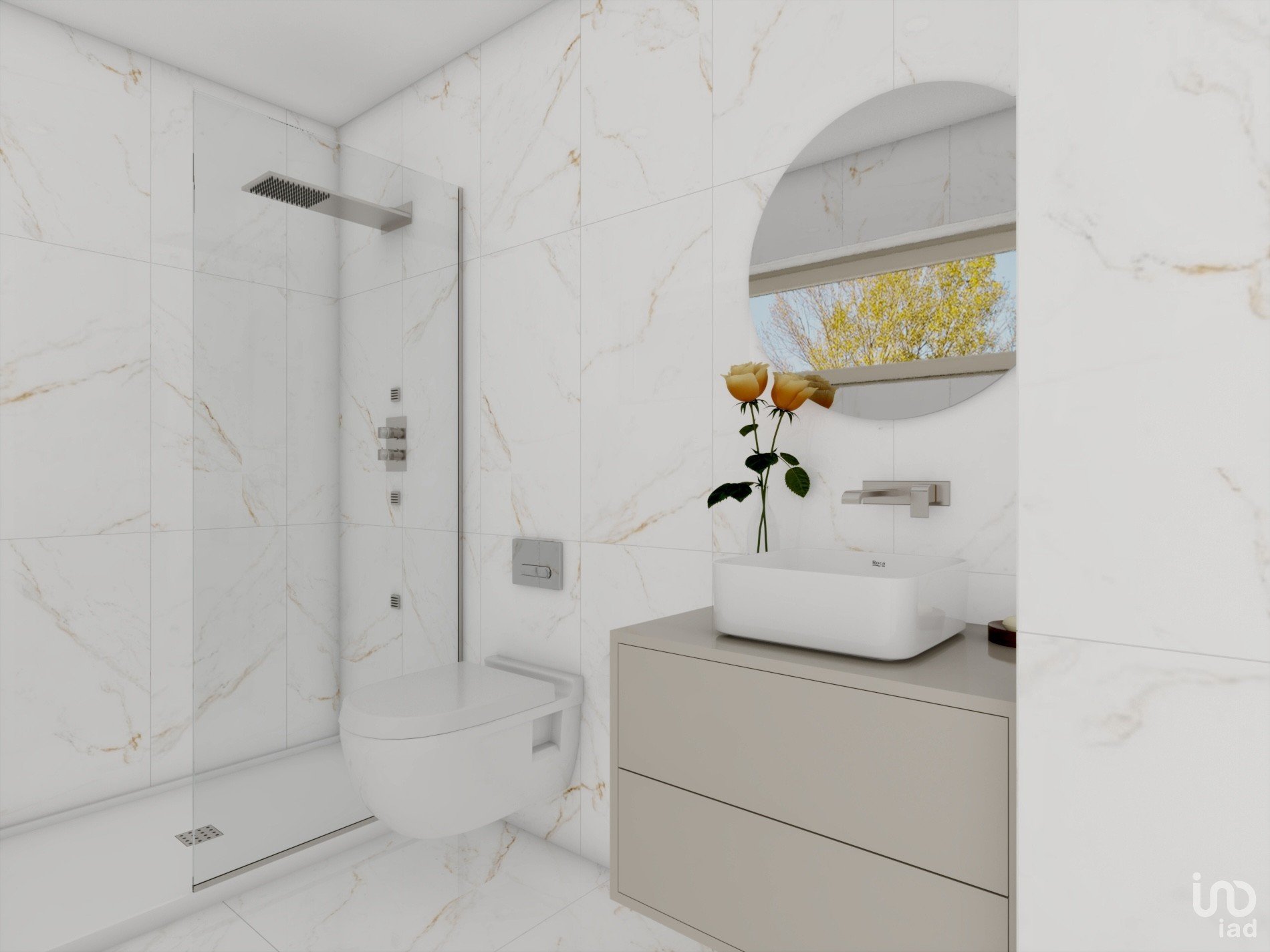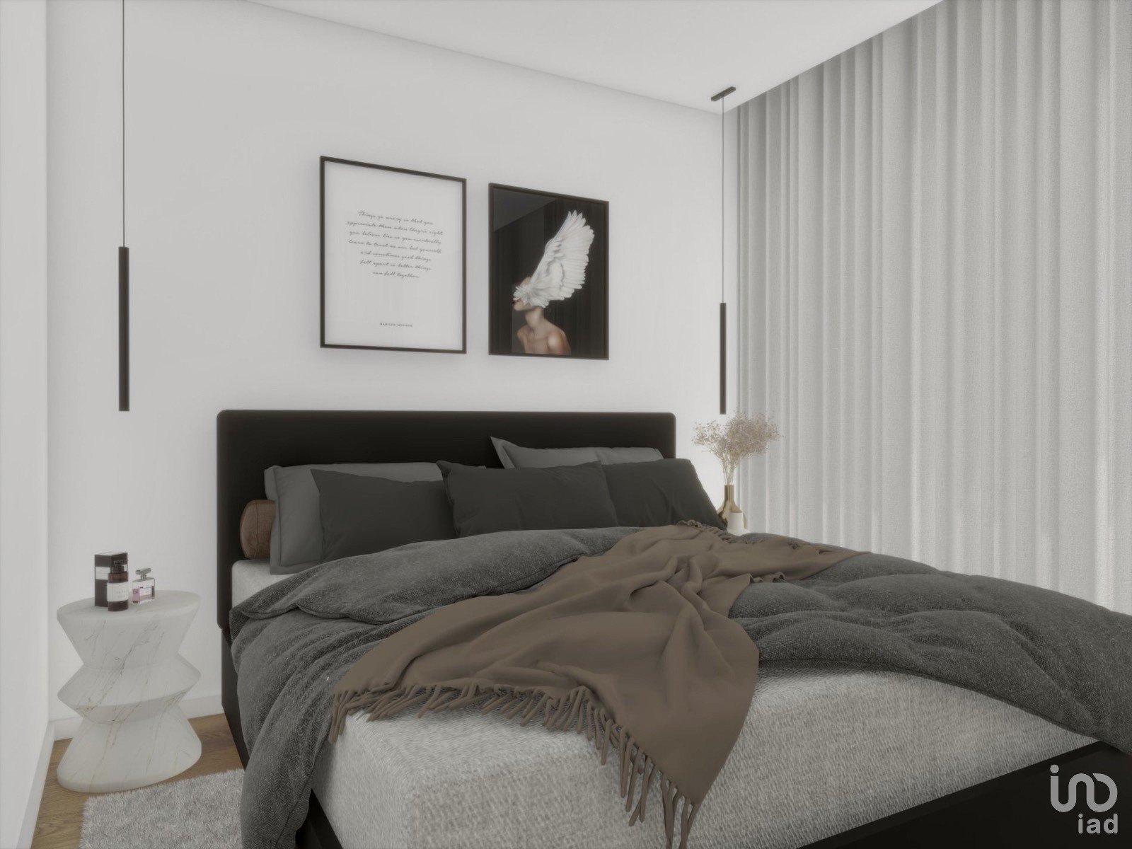 À l'étage, nous disposons de trois chambres, dont une suite, avec un magnifique balcon exposé plein sud offrant une vue panoramique sur Pevidém, Guimarães et la montagne de Penha. Les deux autres chambres bénéficient également d'un grand balcon. À cet étage, une salle de bain complète complète les deux autres chambres, la suite disposant de sa propre salle de bain, toutes deux équipées d'une douche, de sanitaires suspendus, d'un meuble suspendu avec vasque et miroir intégrés.