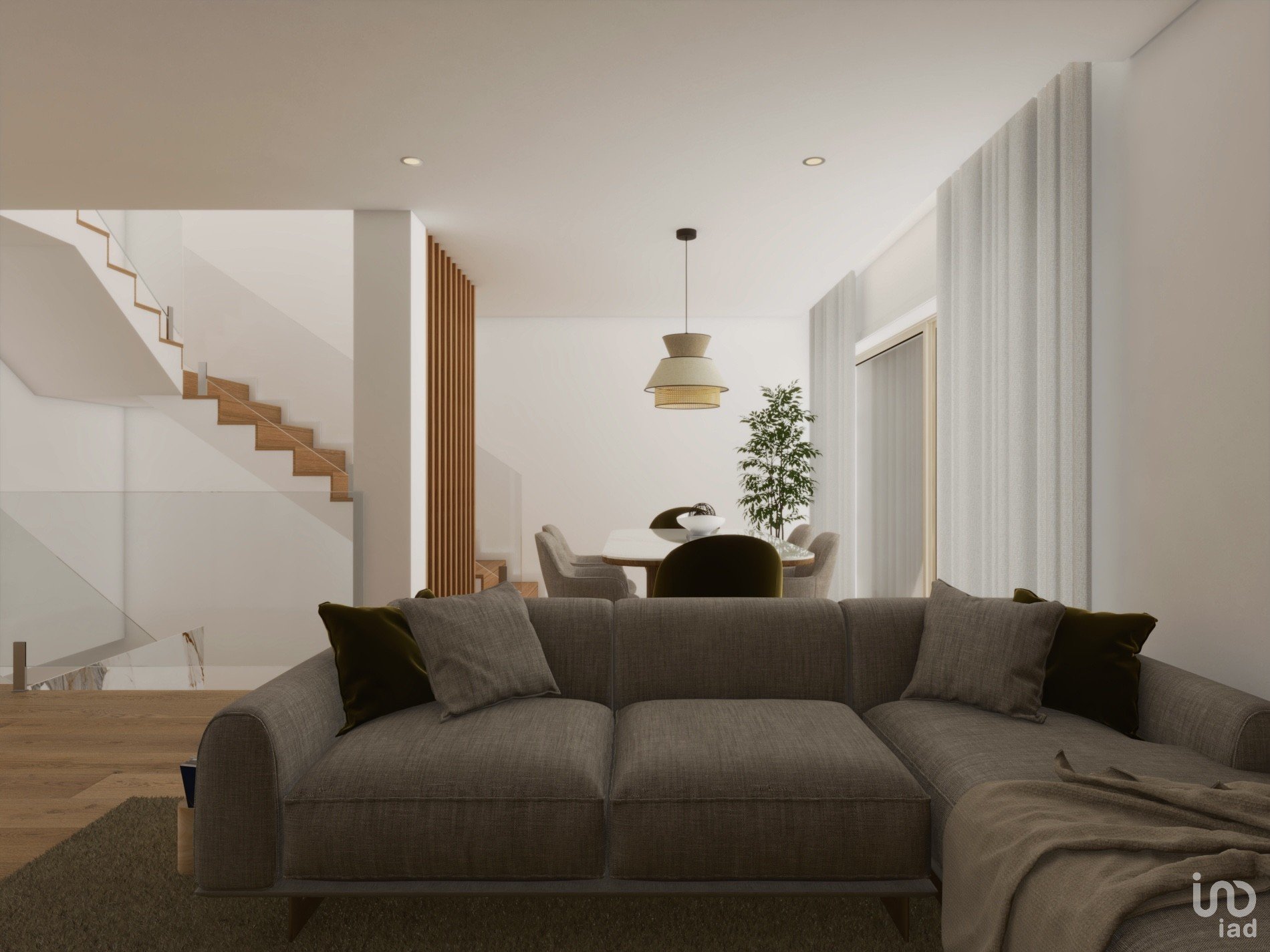 Maisons de ville d'excellente qualité de construction et espaces ouverts. Le rez-de-chaussée comprend un garage pour 3 voitures et de nombreux rangements. Au premier étage, la cuisine ouverte sur la salle à manger et le salon bénéficie d'un grand balcon exposé sud. Depuis la cuisine, on accède au patio extérieur, idéal pour des moments de détente ou des repas en plein air. La maison sera livrée avec une cuisine entièrement équipée et meublée. Une buanderie et une salle de bain de service sont également disponibles au premier étage.