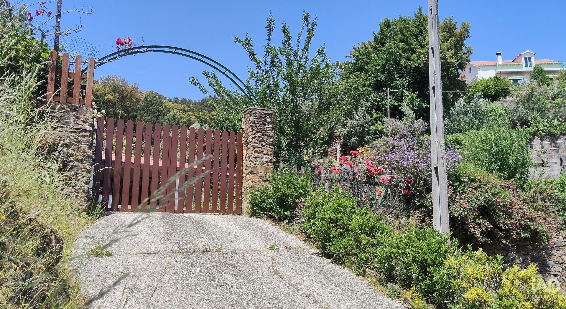 Charmante entrée en schiste avec portail clôturé, garantissant une intimité et une sécurité totales.