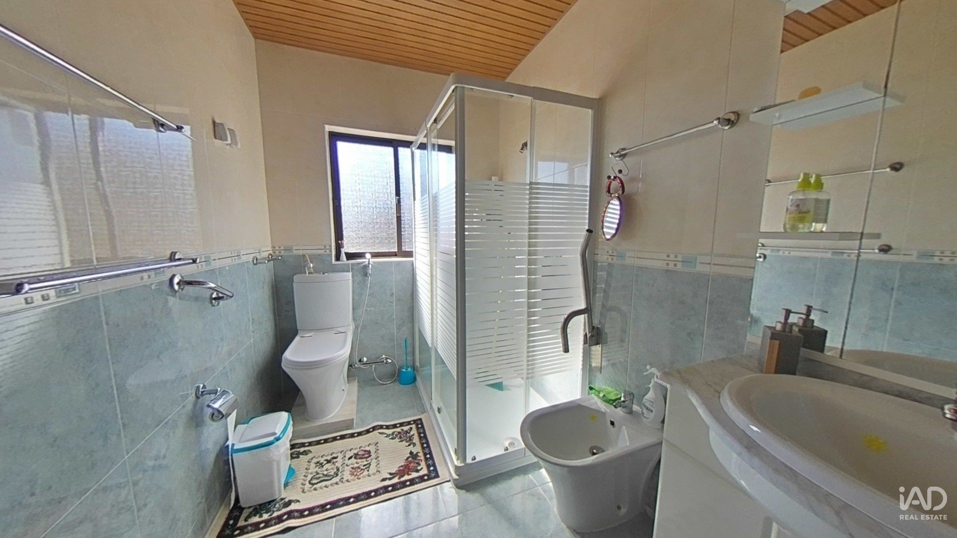 Salle de bain fonctionnelle et bien distribuée.