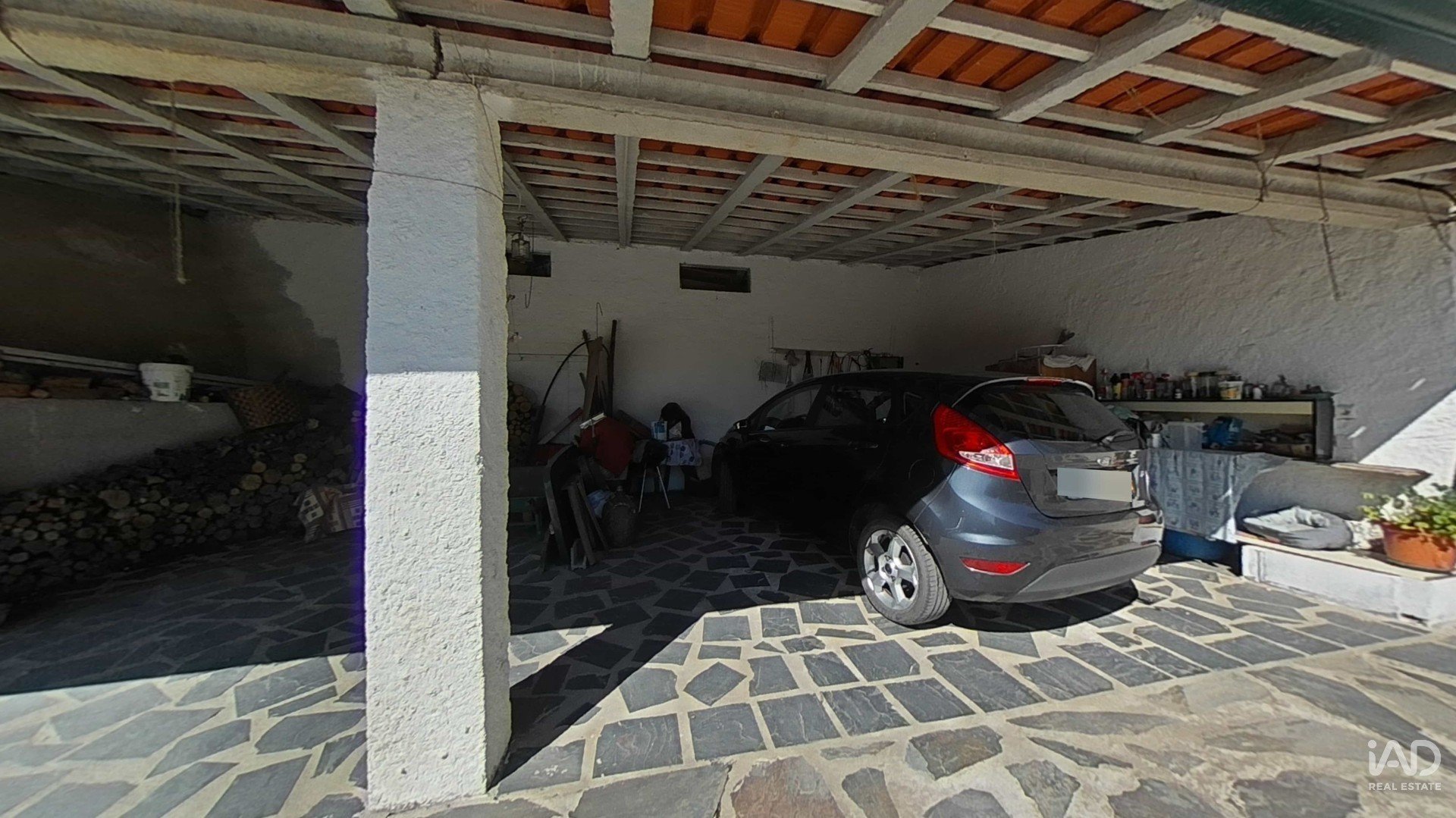 Porche couvert pouvant accueillir plusieurs voitures.