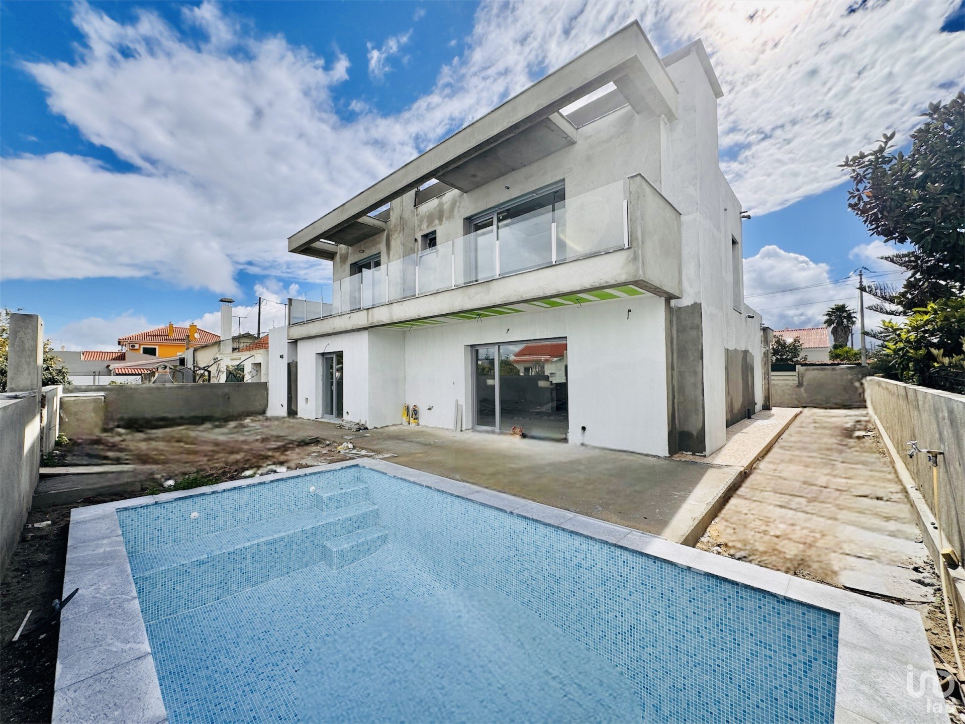 Cette villa en construction est implantée sur un terrain de 432m², avec une empreinte au sol de 181,66m² et une surface brute totale de construction de 243,00m².