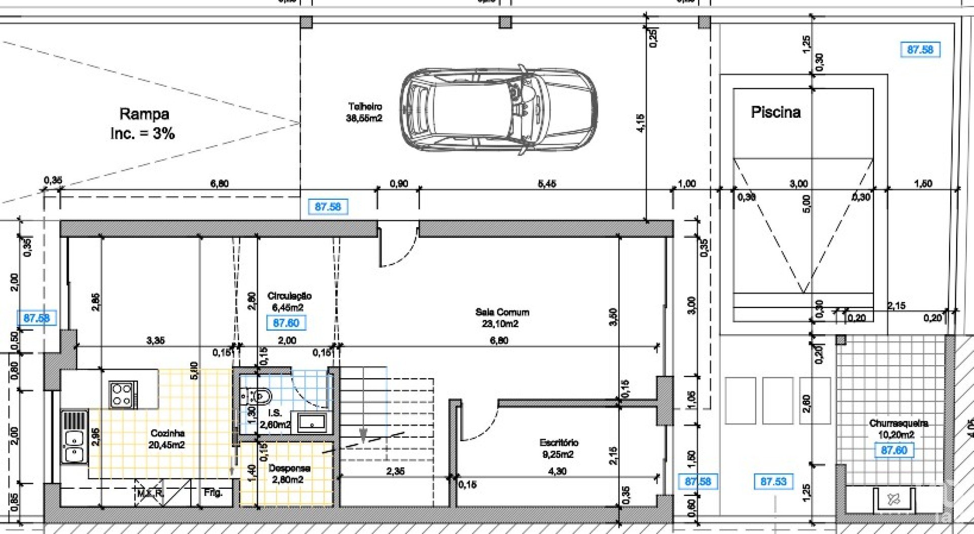 - 86,75 m2 ; salon, cuisine, WC et bureau