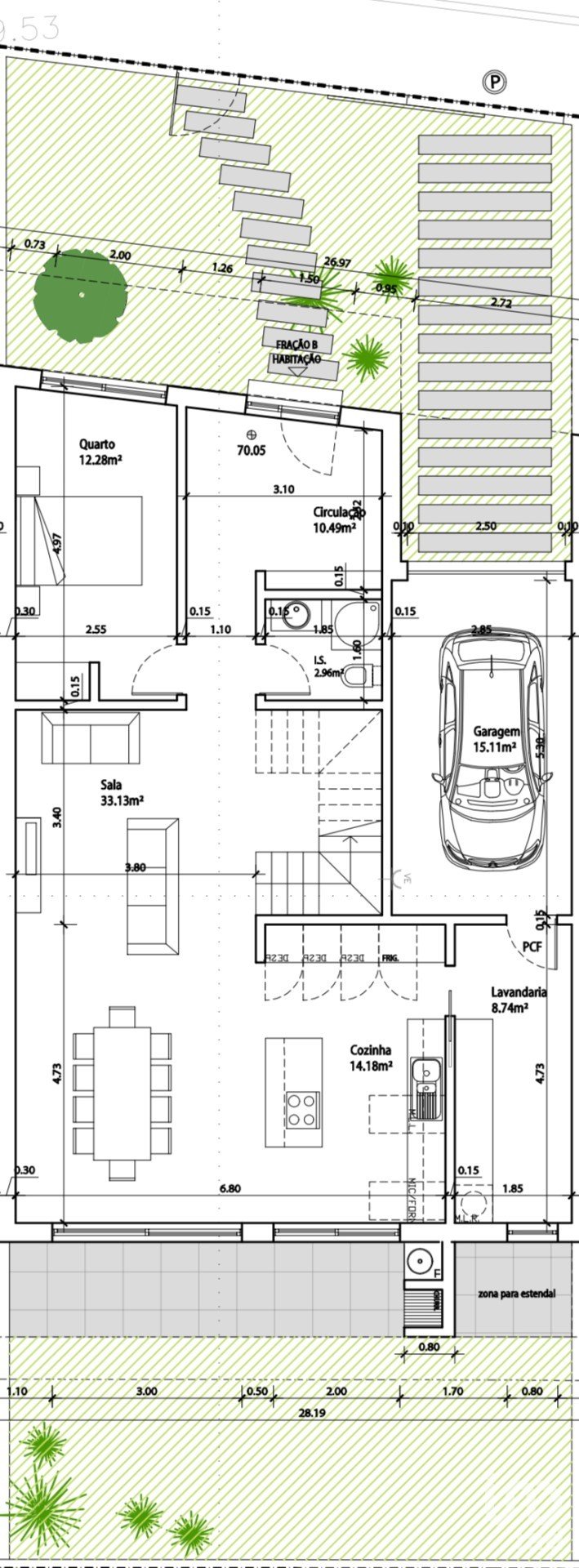 - **Garage (15 m²)** : Espace de stationnement privé ou de rangement supplémentaire.