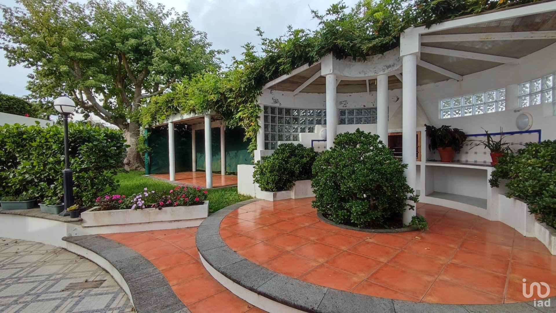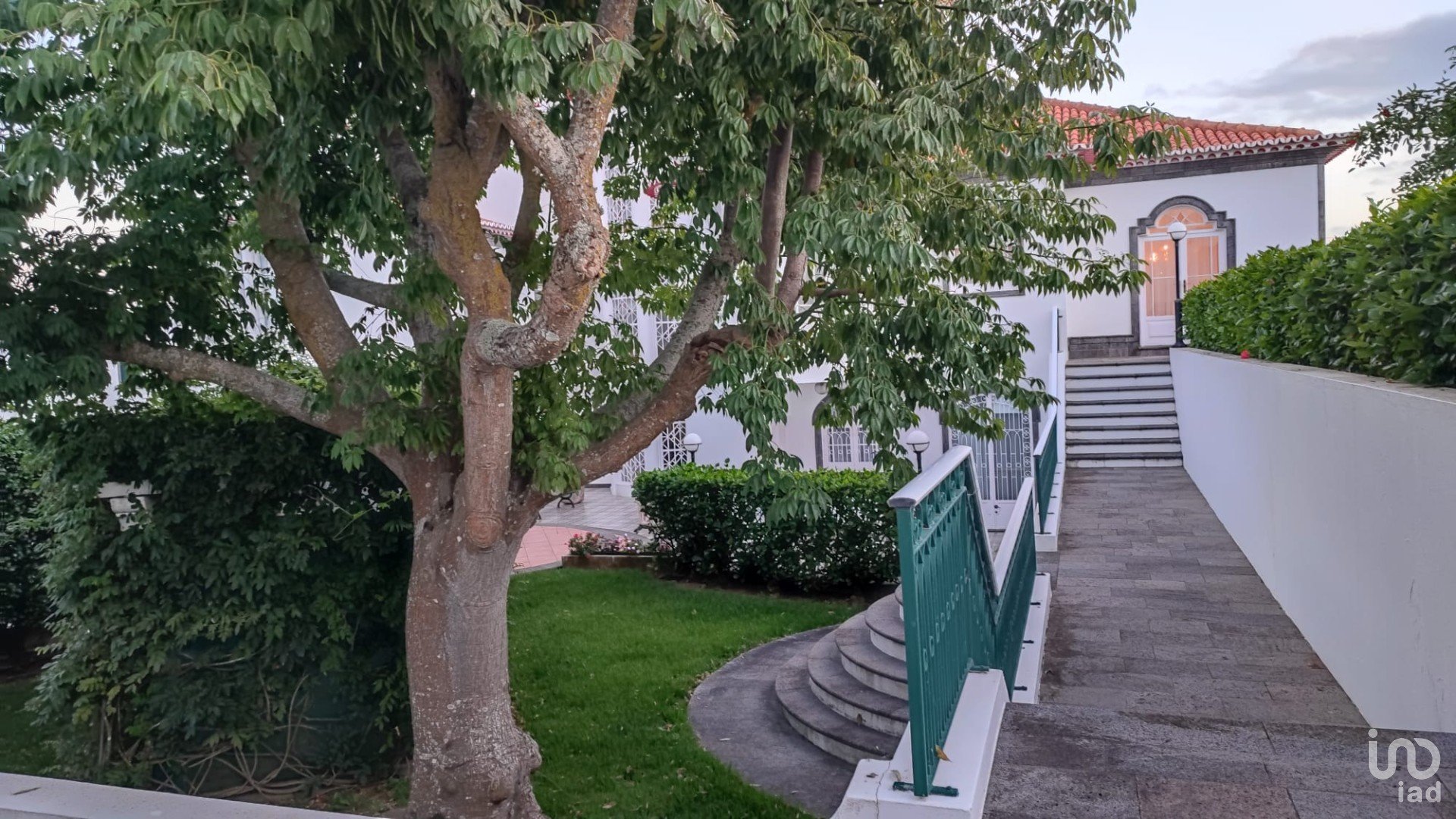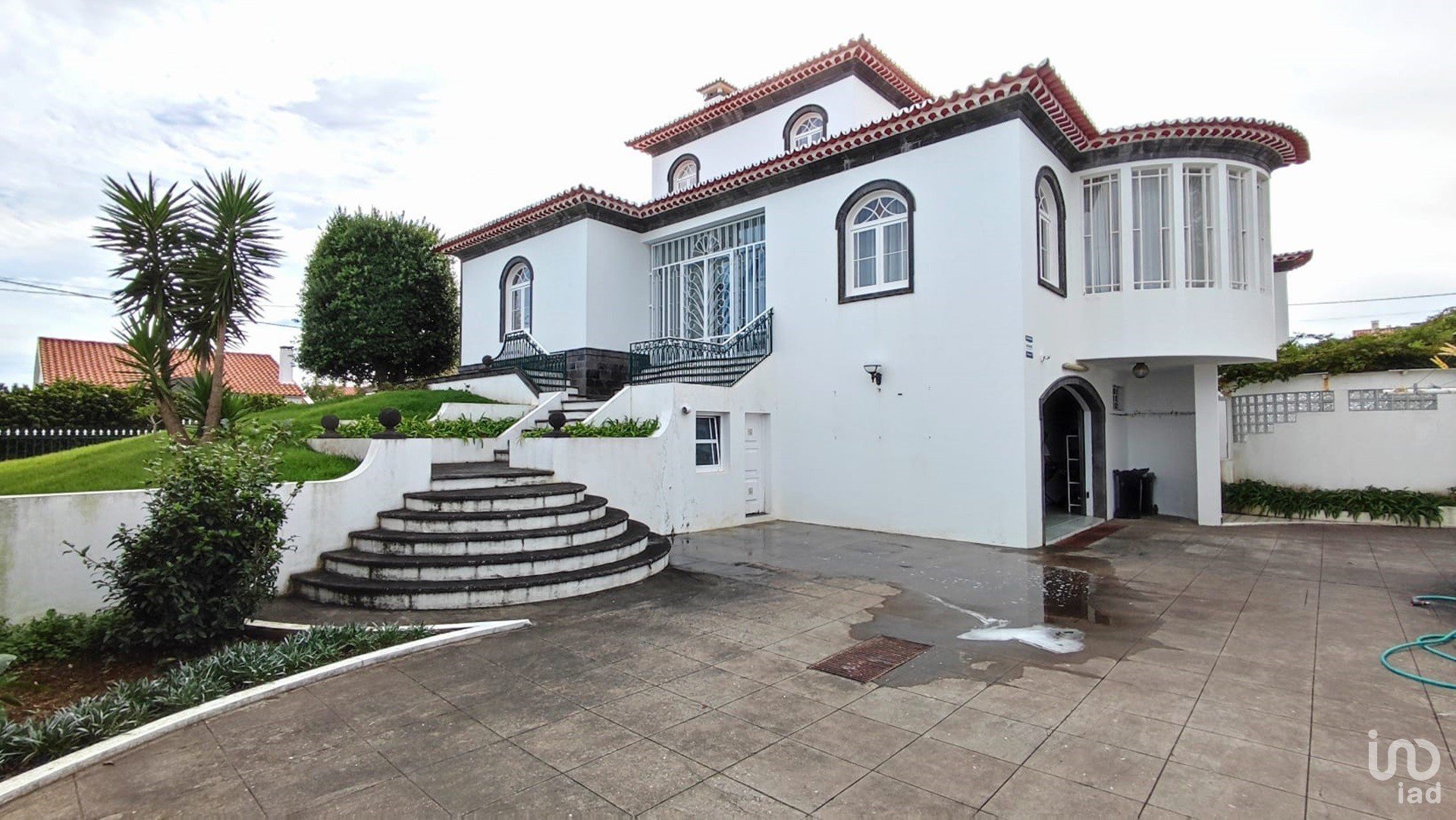 L'entrée sur le terrain de 1 363 m2 se fait par l'entrée principale et un portail électrique qui donne un accès direct au garage d'une capacité de 4 voitures.