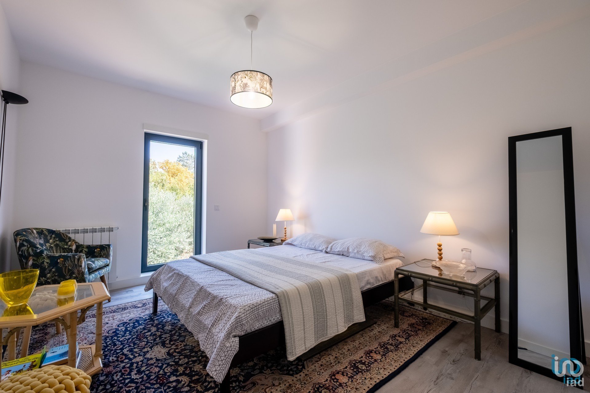 Chambre au rez-de-jardin avec rangements intégrés, climatisation et accès direct au jardin