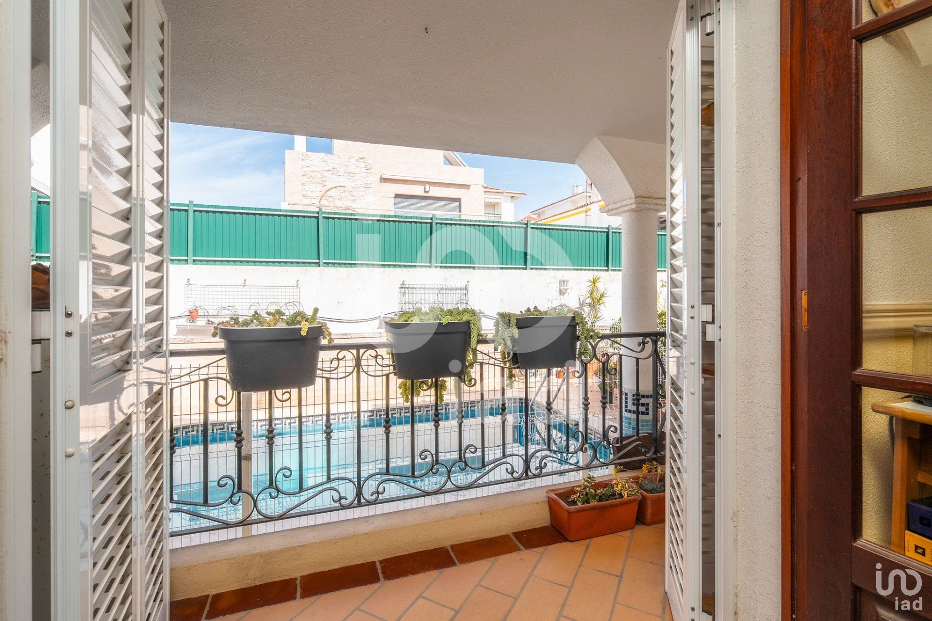 Piscine avec protection pour les enfants, entourée d'un grand patio pour prendre le soleil et des moments de loisirs en plein air.